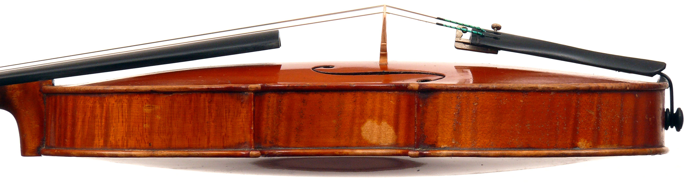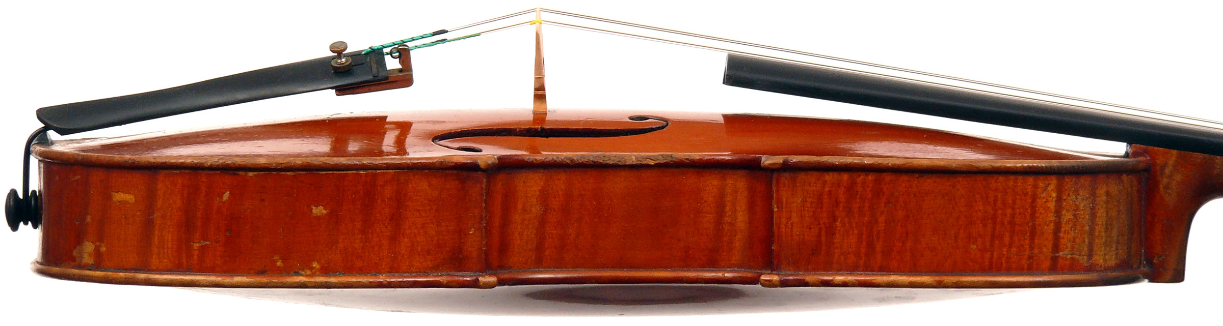 Other than a few minor scratches and wearing in the varnish, this violin is in impecable condition.