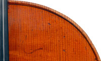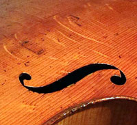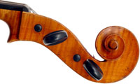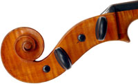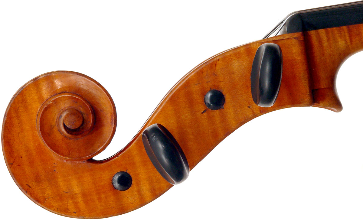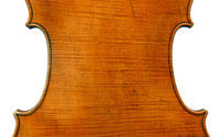 The most striking feature of this beautiful instrument is its exceptionally attractive one piece back of well-figured maple with a narrow curl, repeated in the sides - evidently from the same tree.