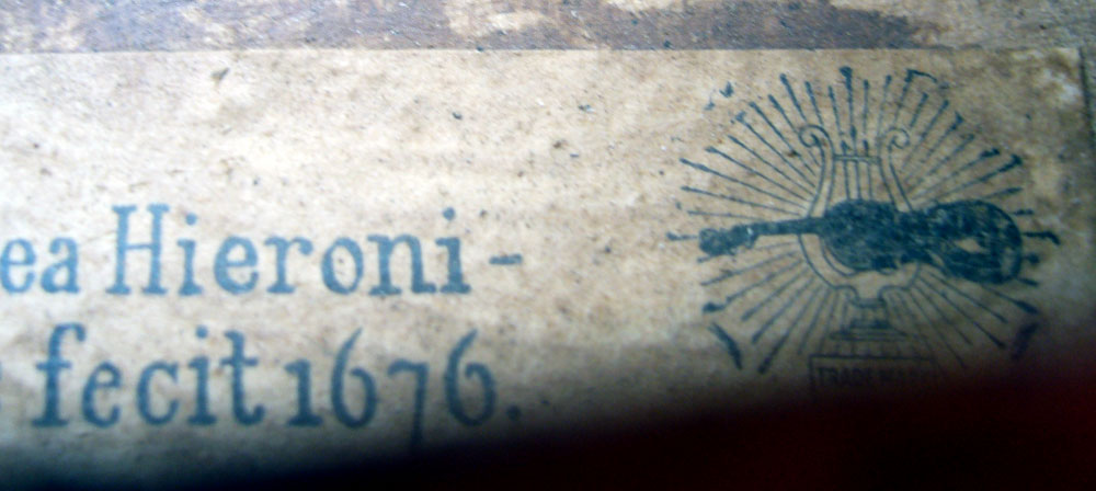 This Lady's violin (7/8th size) has a generic Amati label which also bears the emblem of the firm of Jérôme Thibouville-Lamy (a violin superimposed over a lyre with rays emitting from it) and dates from around 1920. It is in excellent condition with absolutely no crack or evident repair in it.