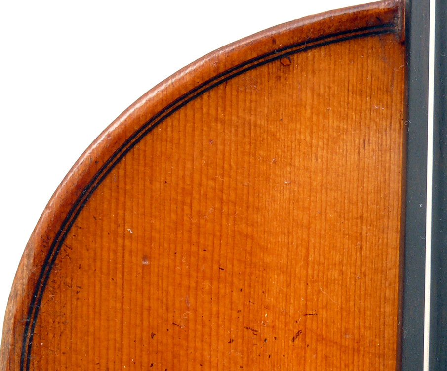This violin is made from excellent woods - it has an attractive two-piece back - much a trademark of good JTL instruments - of nicely figured maple with a straight narrow curl, repeated in the ribs. The neck and scroll are of really attractive maple. The varnish is a light golden brown. Craftsmanship is excellent throughout and the violin was made with attention to detail.