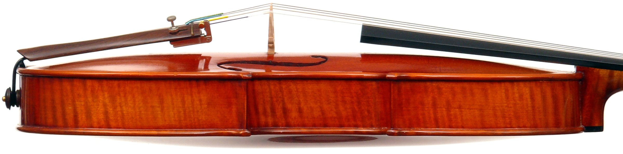 This violin is based on the Stradivari pattern and conforms to the highest standards one could expect from a good trade (commercial) instrument, with impeccable craftmanship evident throughout. The choice of materials is good and it has visual appeal.