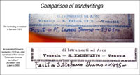 Further, the handwritten dedication on the label corresponds adequately with an example of 15 years later, reproduced in René Vannes' Dictionnaire Universel de Luthiers, 1999 edition (label 2956), to conclude that it is by the same writer (see photos).