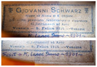 Giovanni Schwarz (1865 - 1953) apprenticed under Eugenio Degani and this violin shows direct influence from Degani. This is most evident in the arching, which is frankly identical to two Deganis I've dealt with - being quite full, rising sharply up from the flanks, yet with prominent edgework, both in the top and back. The treatment of the corners is virtually identical to a 1899 Degani I am familiar with.