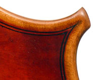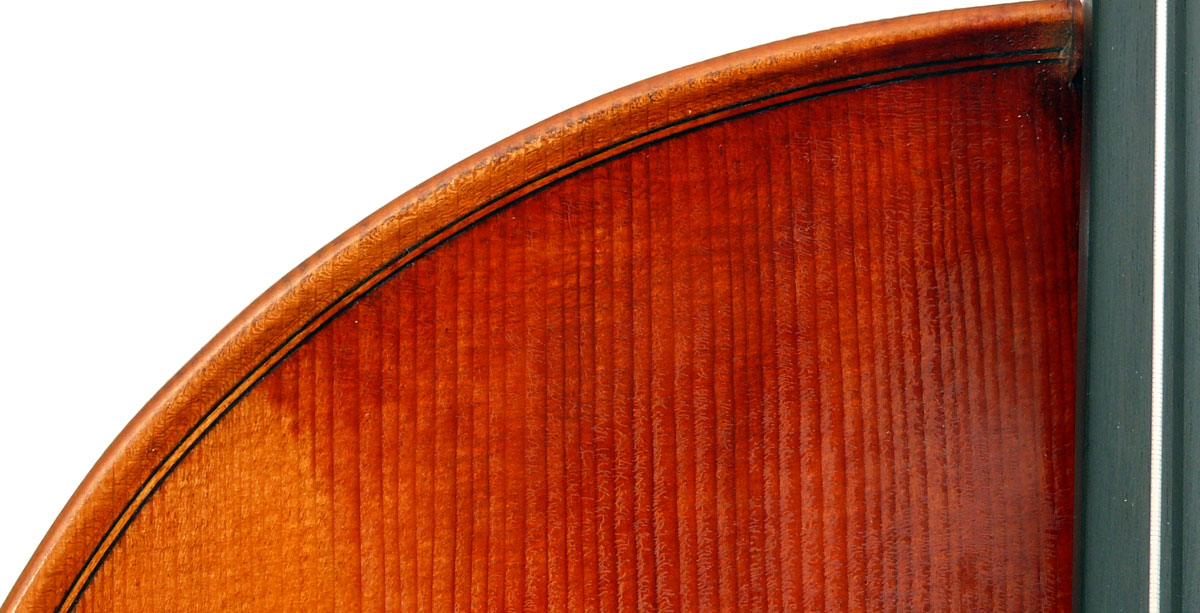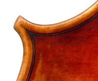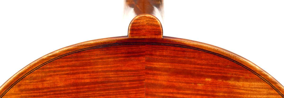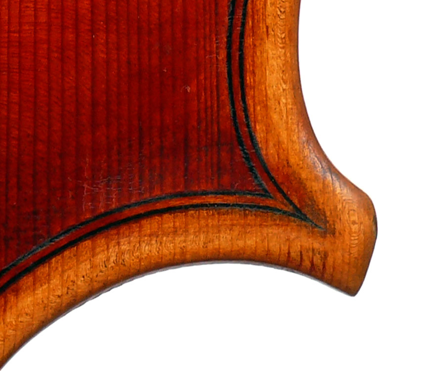 Close examination of this instrument shows remarkably tidy work with meticulous attention to detail - take a look at the photos and in particular the cornerwork which shows impeccable mitres and finish to the corner shape. The scroll is exceptionally balanced and elegant. Throughout this cello gives evidence of craftsmanship of a high order.