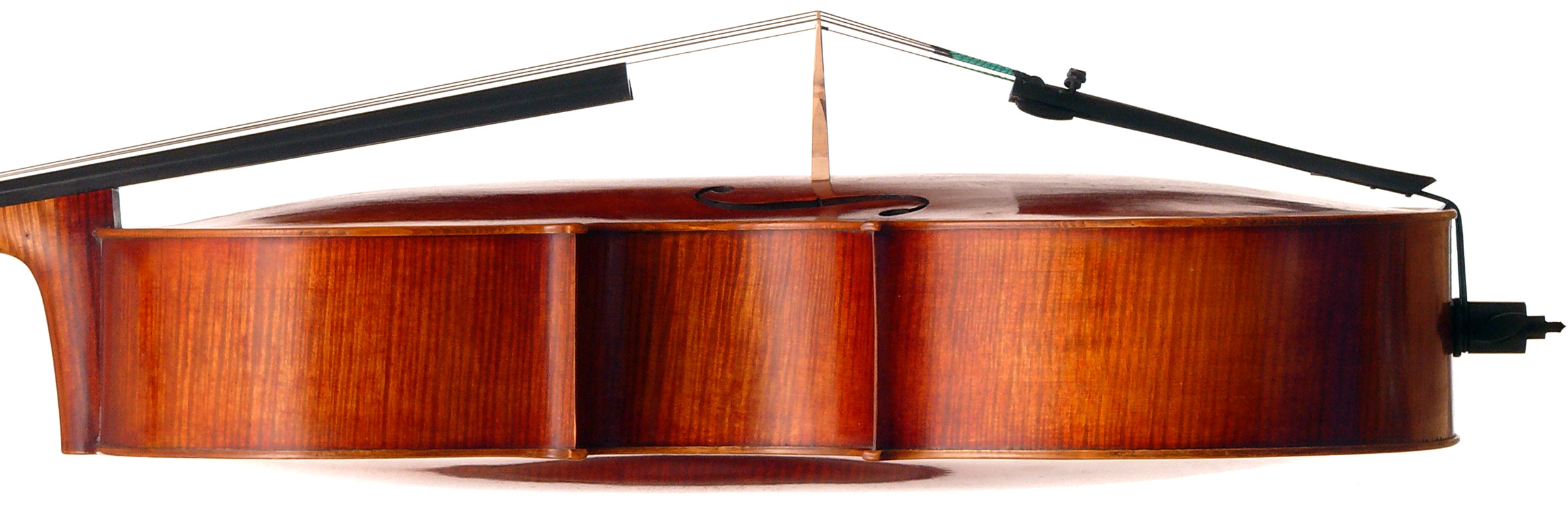 In this instrument the objective was strong tonal properties. The result is a cello representing an amalgam of excellent workmanship and an excellent choice of materials resulting in excellent tonal properties which competes with the best output of some leading master instrument builders.