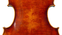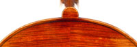 The two-piece back and sides are of well-flamed maple with an distinct regular straight narrow curl that truly appeals. Material for the top is also well-chosen - high grade tone spruce with medium to wide growth lines at the centre line narrowing considerably to the flanks. The neck and scroll are a repeat of the material used in the back - the neck is unusually nicely flamed, all the way into the scroll (see photos). The deep red-brown varnish is characteristic of French work and beautifully compliments the wood, adding a rich lustre to the appearance.