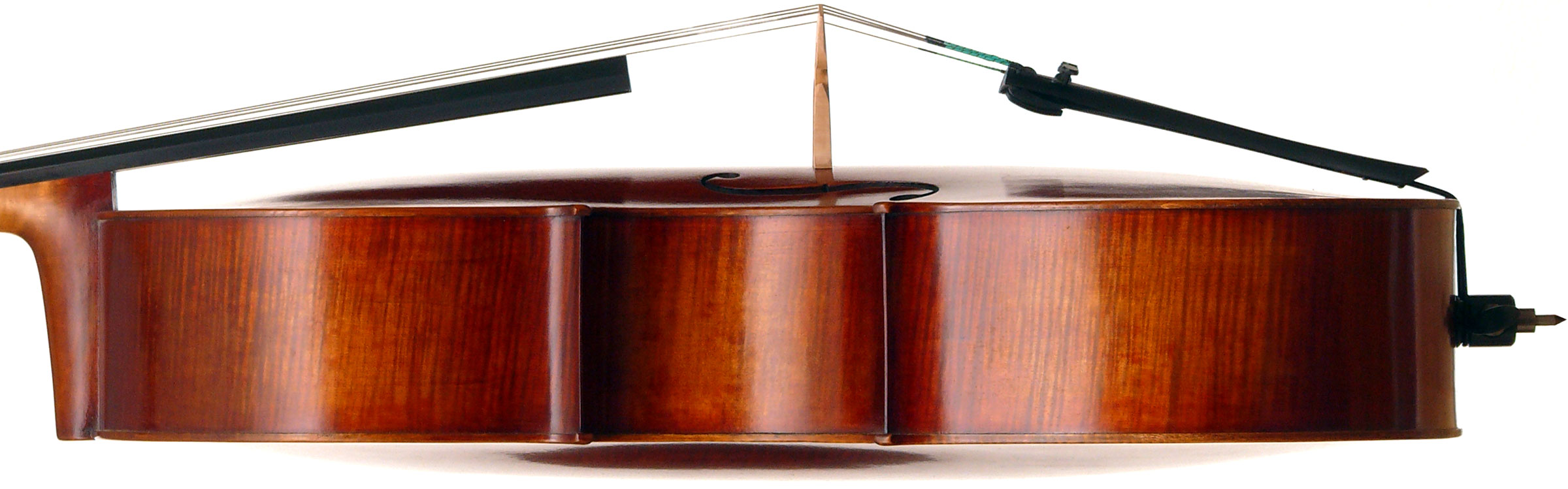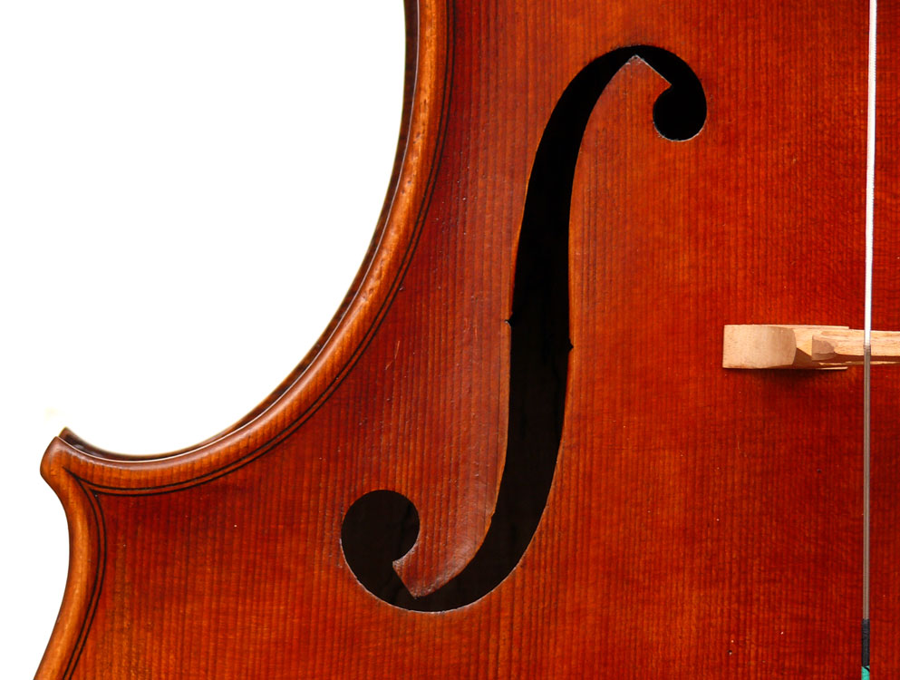 In this instrument the objective was strong tonal properties. The result is a cello representing an amalgam of excellent workmanship and an excellent choice of materials resulting in excellent tonal properties which competes with the best output of some leading master instrument builders.