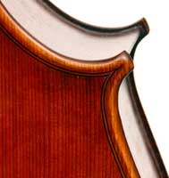 The two-piece back and sides are of well-flamed maple with an distinct regular straight narrow curl that truly appeals. Material for the top is also well-chosen - high-grade tone spruce with narrow to medium growth lines at the centre line opening slightly to the flanks. The neck and scroll are a repeat of the material used in the back. The deep red-brown varnish is characteristic of French work and beautifully compliments the wood, adding a rich lustre to the appearance.