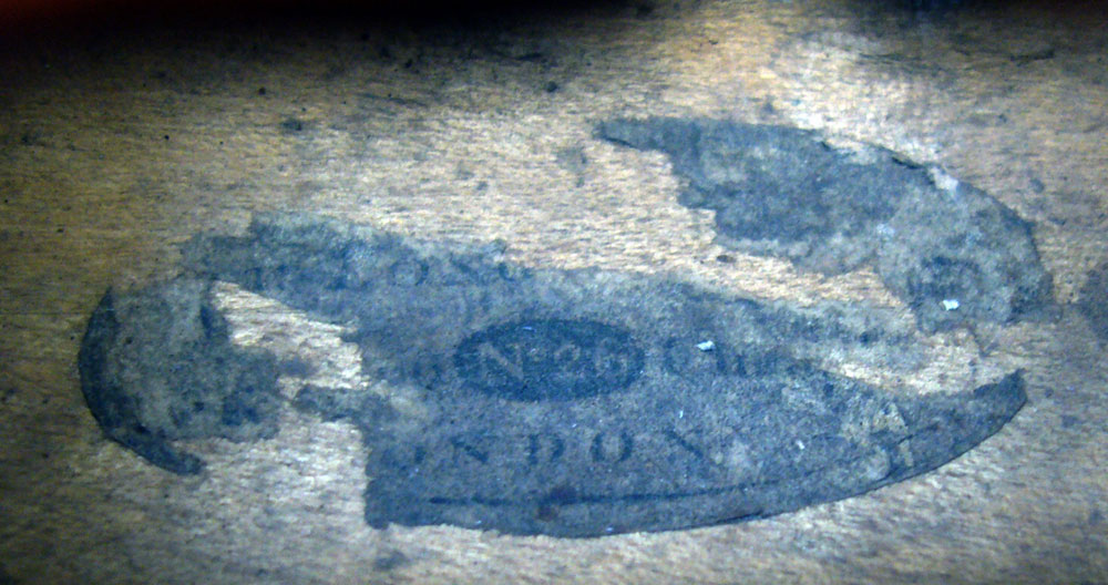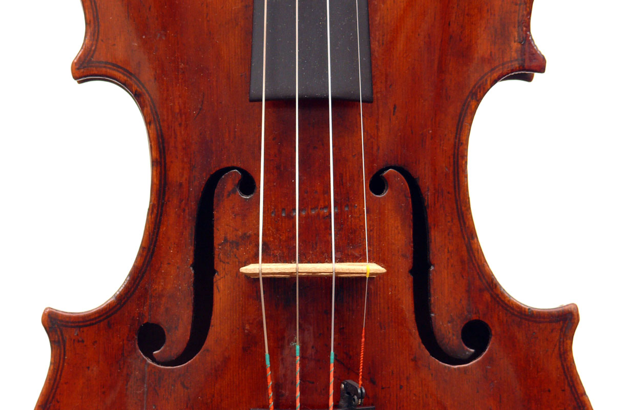 Just enough of the fragmented label remains in this old English violin to positively identify it as being that of James Longman, an important dealer who operated in London from 1741 to 1798. The London expert, Ben Hebbert, pointed out that this label was presumably used by Longman before he went into partnership with Charles Lukey in 1769, so one can safely assume that this violin dates from before that partnership.