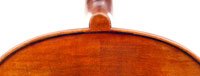 The two-piece back and sides are of excellent maple with an regular straight curl. Material for the top is well-chosen - high grade tone spruce with medium to narrow growth lines. The neck and scroll are a repeat of the material used in the back. The amber-brown varnish beautifully compliments the wood, adding lustre to the appearance.