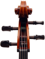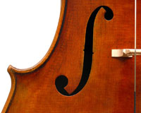 This cello is based on the Stadivari pattern - a proven model preferred by all for its clarity of tone and aesthetic appeal. This instrument has also been antiqued to have the appearance of an early 19th century cello - very nicely done and very much a norm in lutherie today, to the extent that antiquing is a requirement and a criterion in some international violinmaking competitions such as the Violin Society of America Competition.