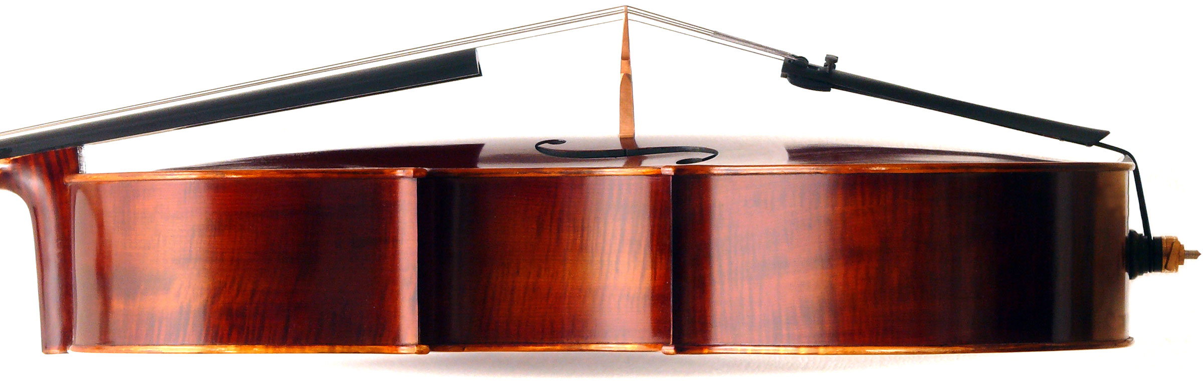 Three things are immediately apparent in this cello: firstly, it is very well-toned throughout the register, it speaks easily with great response throughout the dynamic range; secondly, it is a very beautiful instrument of exceptionally attractive materials, especially in the back; and thirdly, the workmanship in it throughout is superb, notably in the purfling and corners where accuracy prevails, and also in the scroll, which is elegant and nicely balanced.