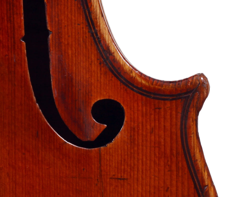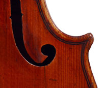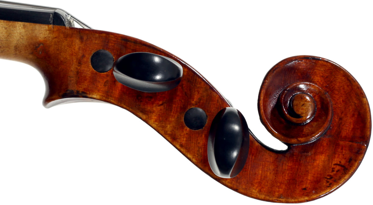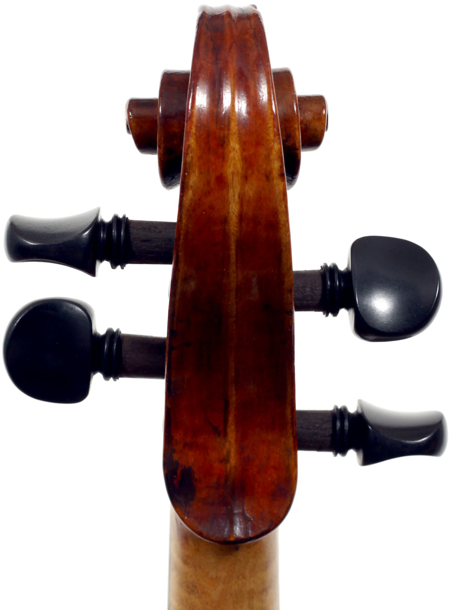 It should be stated that the neck and scroll are not original to this violin, but is by the important French maker, Didier Nicolas, L'ainé (1757-1833). The previous neck and scroll definitely wasn't original to the violin, was of very poor quality and was poorly fitted. I had this Didier Nicolas neck in my collection (previously from the J. J. van de Geest collection) and after some analysis it was clear that the Nicolas neck would fit perfectly onto this violin - even the varnish matched. The neck block was replaced and the Nicolas neck and scroll fitted, making for a superb combination in an excellent violin.