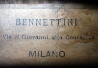 Despite very little biographical information being available about this maker, he is listed by the authorities William Henley and René Vannes and also in Karel Jalovec's work 'Italian Violin Makers' as having worked in Milan during the period 1865 to 1890. The modern expert and commentator, John Dilworth, confirms this. All of them mention his superb and meticulous work in the Stradivari model and the use of reddish-brown varnish, which largely describes this violin.