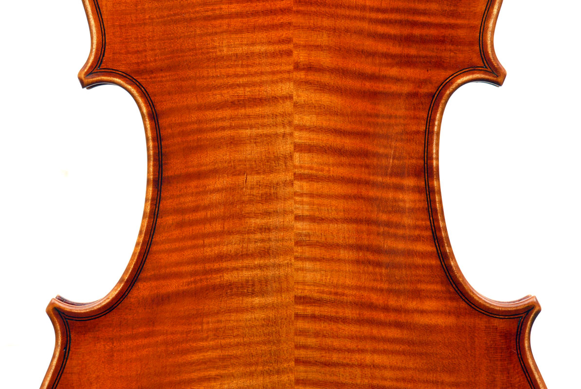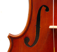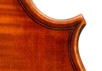 No matter how carefully I examined it, I couldn't fault it anywhere. The choice of materials is superb - from a lovely even-grained tone-spruce top to the beautifully flamed two-piece back, the wood shows discernment. It is in the attention to detail that the story is told - in the purfling, corners and crisp Fs one reads the seriousness intent of conforming to the traditions of good lutherie, transcending mere functionality and commercialism.