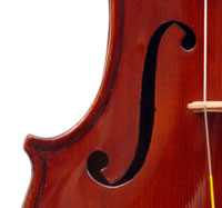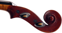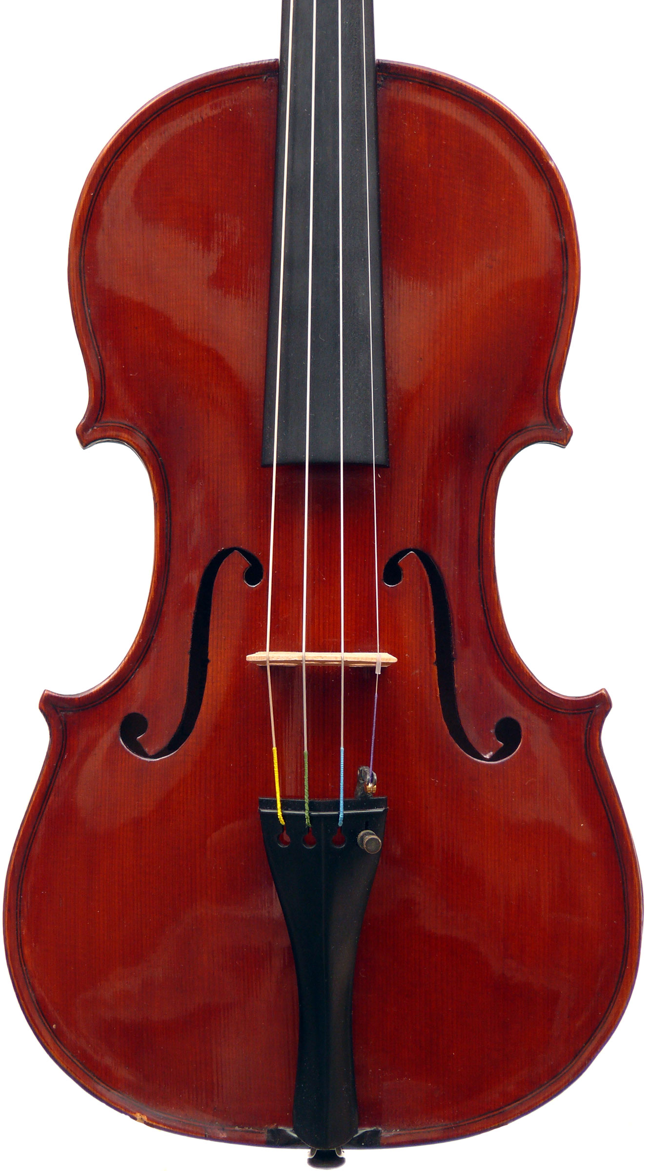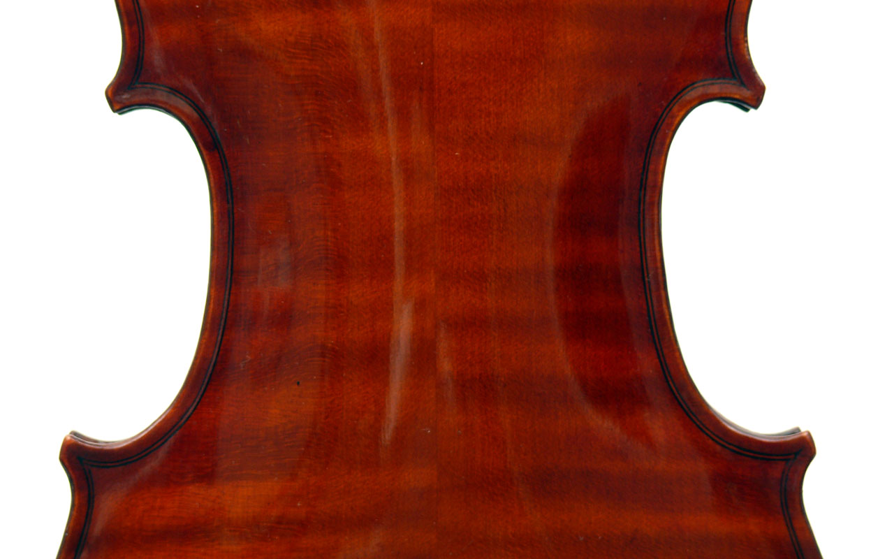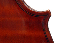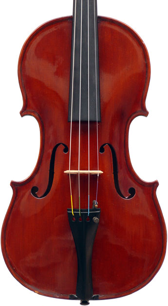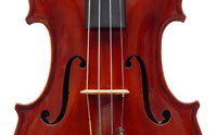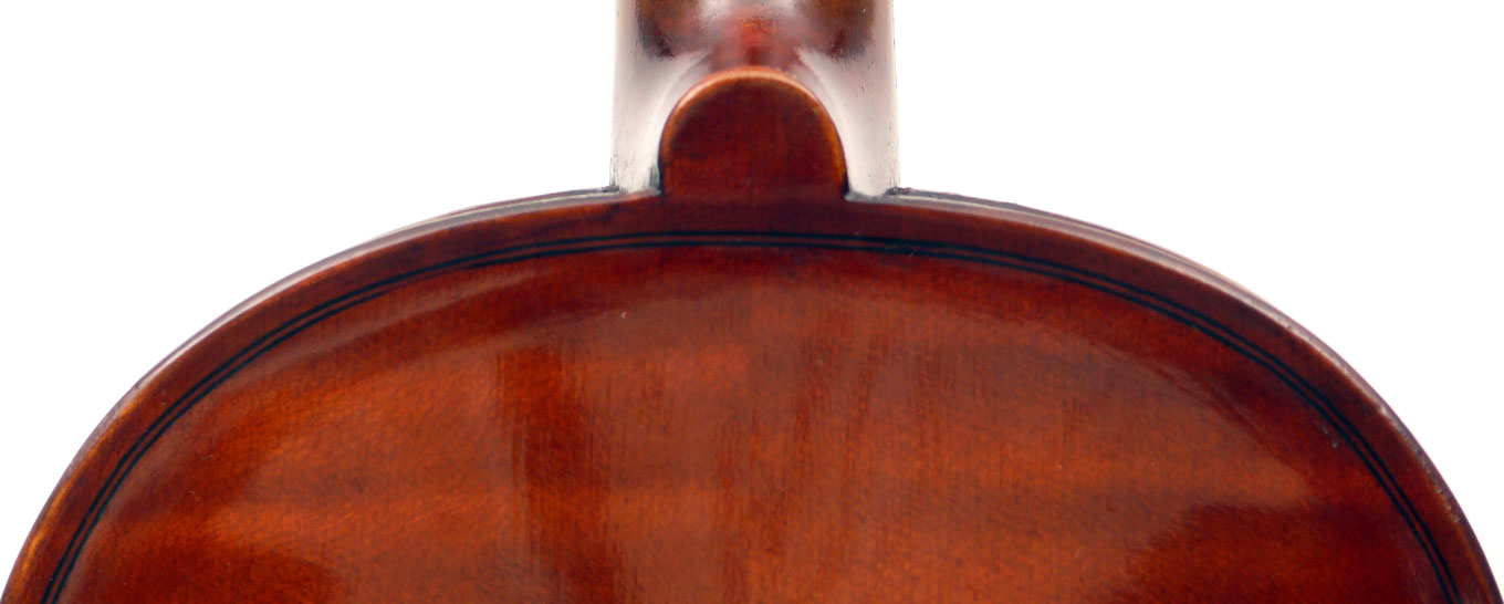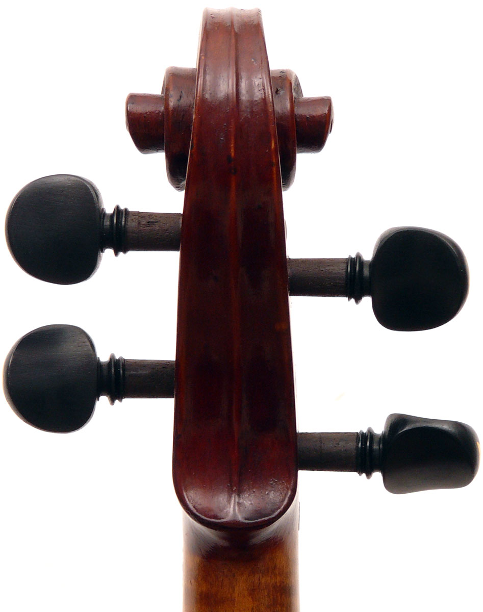 After 102 years this violin is still in impeccable condition, as if made yesterday. One is struck by the very attractive wine-red varnish, reminiscent of French preferences, and by the tidy workmanship throughout, notably crisp and sharp workmanship in the Fs with nicely fluted palettes.