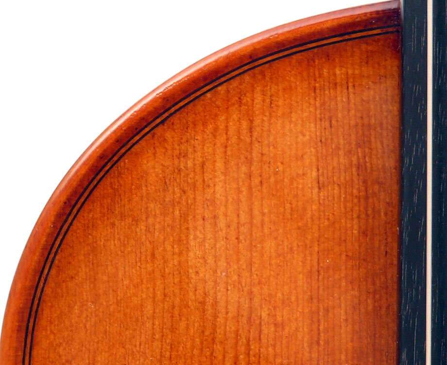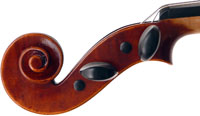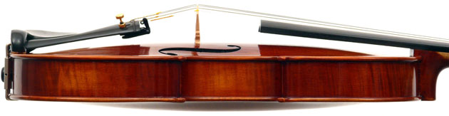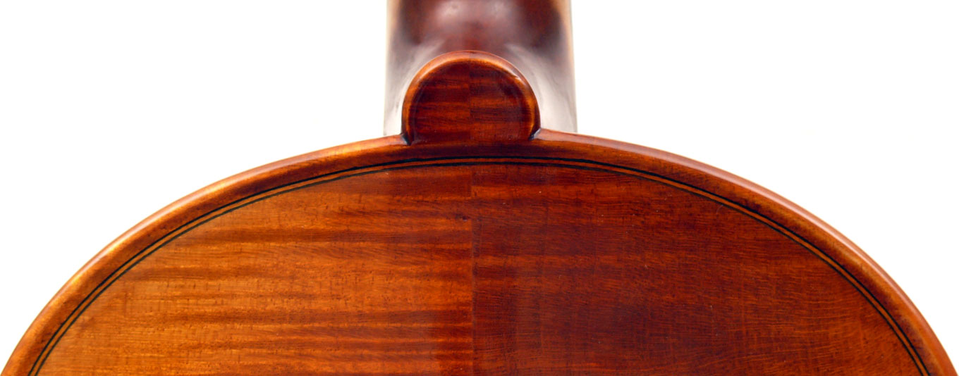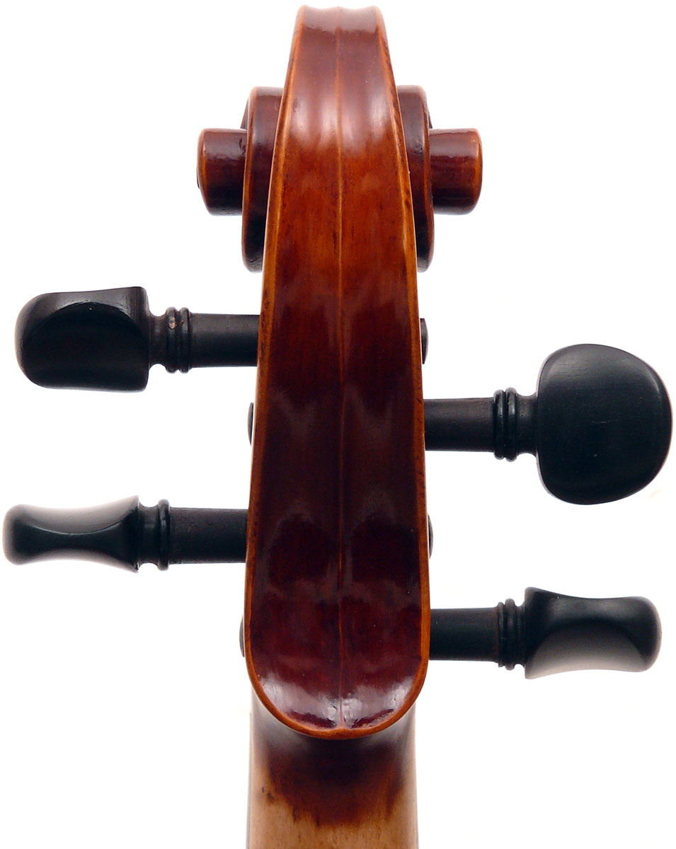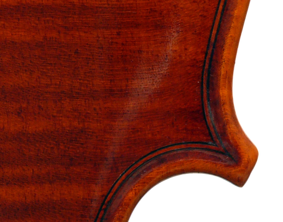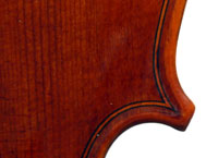 All who have played this violin have expressed appreciation for its excellent tonal properties and good workmanship. The choice of materials is excellent - from a lovely even-grained tone-spruce top to the beautifully flamed two-piece back, the wood shows discernment. It is in the attention to detail that the story is told - in the purfling, corners and crisp Fs one reads the intent of conforming to the traditions of good lutherie, transcending mere functionality and commercialism.