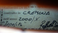 This violin is based on the Guarneri model. Every aspect of this instrument reflects an exceptionally high degree of accuracy in execution and an extremely steady and confident hand. The crisp work in the purfling, the corners and particularly in the mitres impresses and attests to why Rafaello di Biagio is considered internationally as an important Cremonese violinmaker.