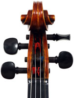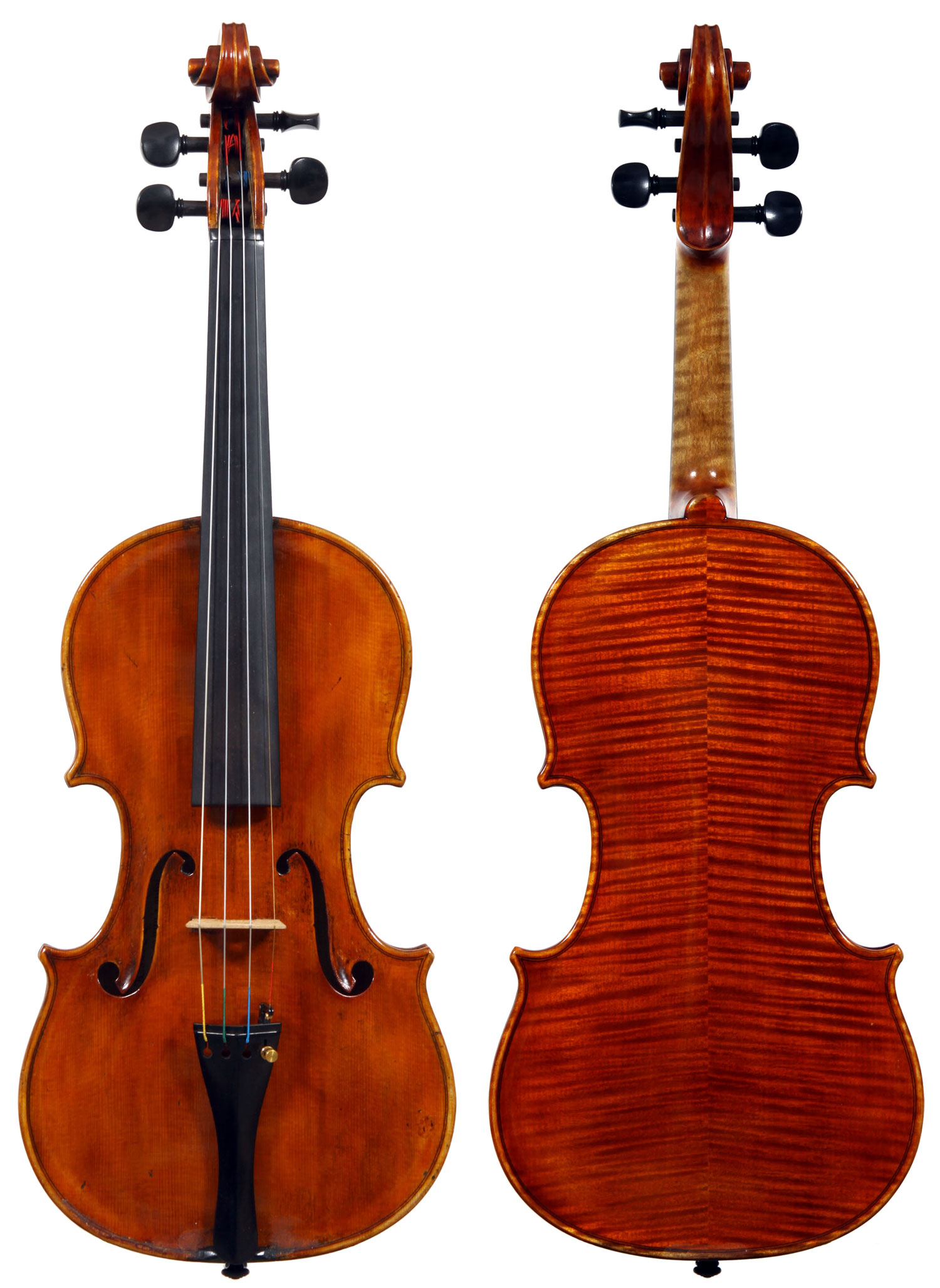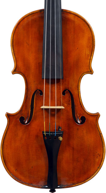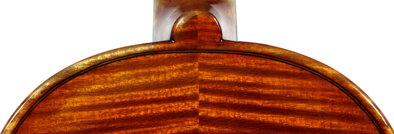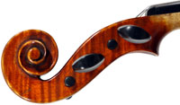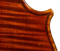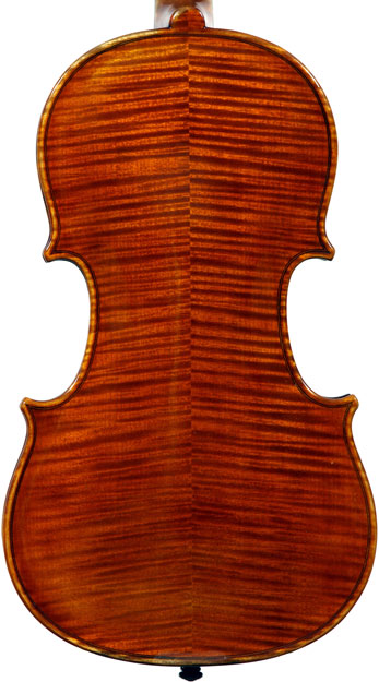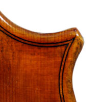 It is a very attractive instrument visually, with a well-flamed two-piece back of medium curled maple with a distinct figure, also used for the ribs, neck and scroll. The top is of good tone spruce with medium to narrow growth lines. The f-hole wings are deeply fluted - much a characteristic of this maker's work. The purfling and cornerwork are tidy, showing an experienced and steady hand. The scroll is bold and well-balanced, yet very elegant in profile. This violin has a beautiful reddish-brown amber colored varnish of high transparency and great suppleness, no doubt contributing to this instrument's rich tonal response. Although clearly showing signs of use, this violin throughout is in impeccable condition without cracks or repairs.