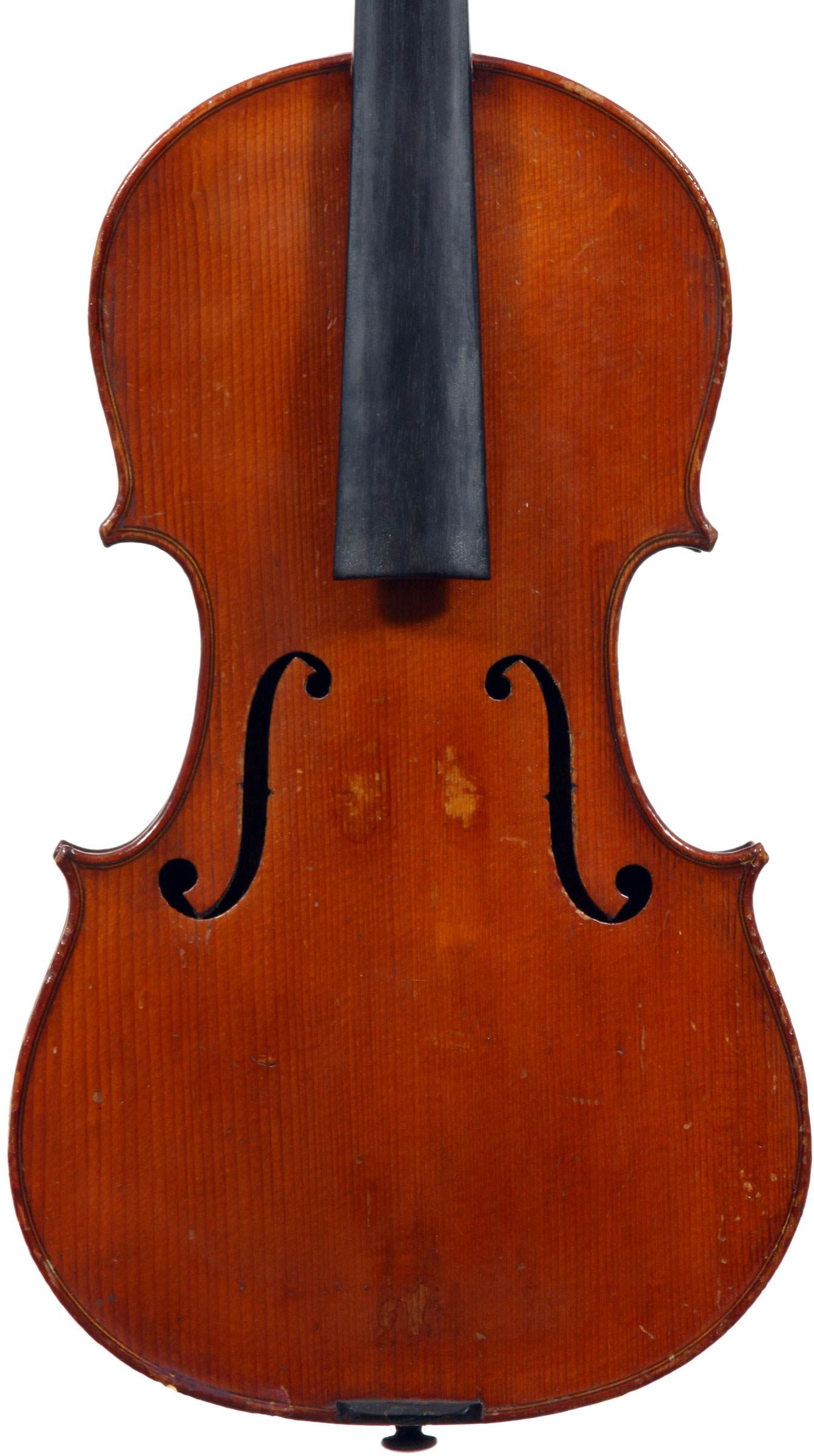 The initial impression was that this is a German violin, but at a closer look much about it is not typically German - the arching, corners, selection of materials, varnish and specifically the back length of 360 mm could be pointers to Mirecourt tendencies around the turn of the 19th century, which is also the estimate of its making. However, this is speculative and strictly speaking its origin remains unknown.