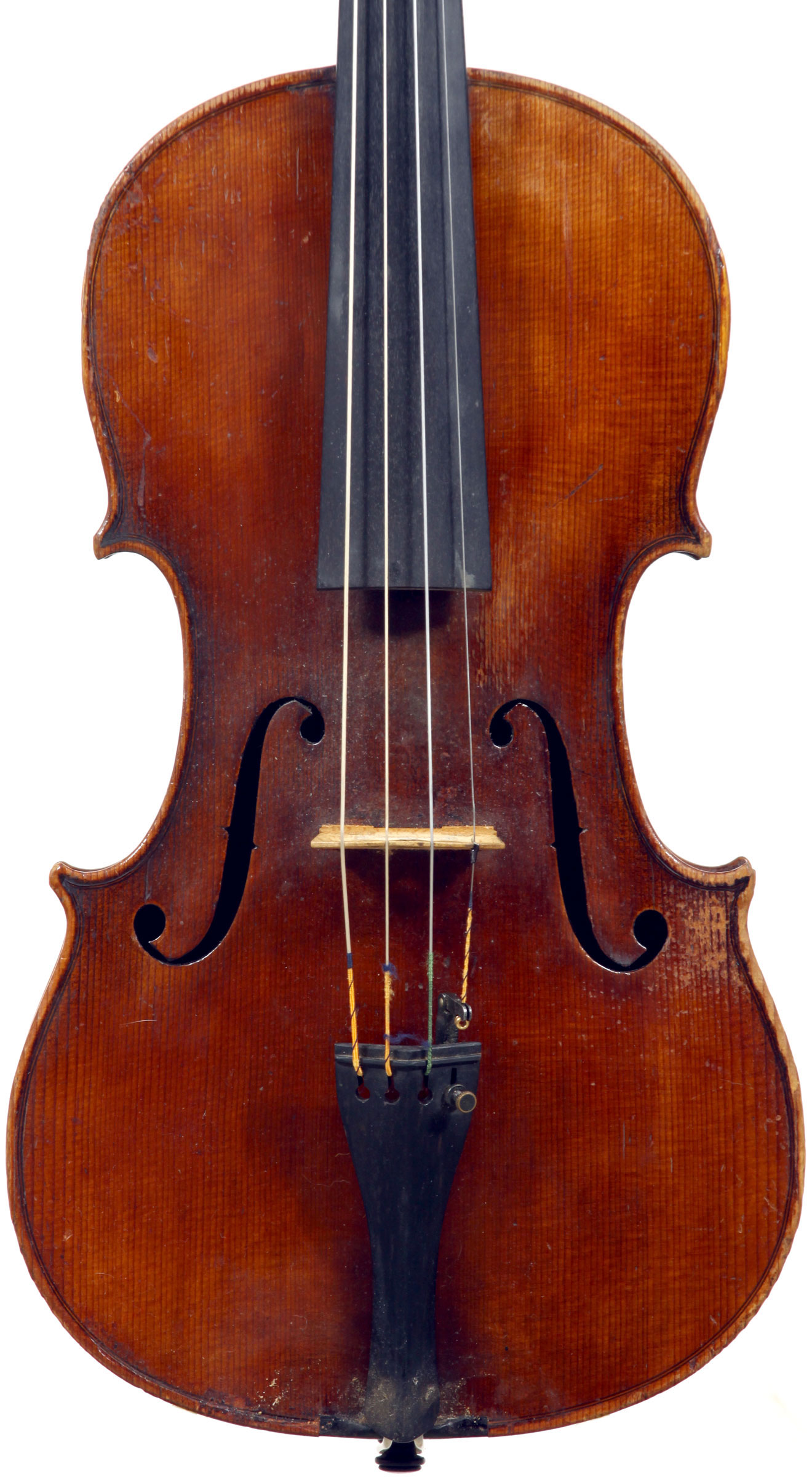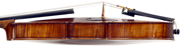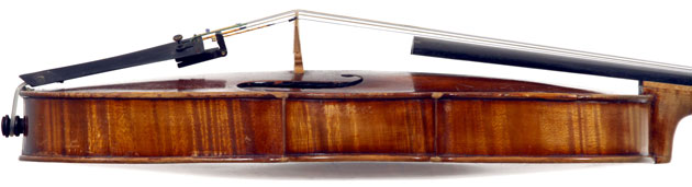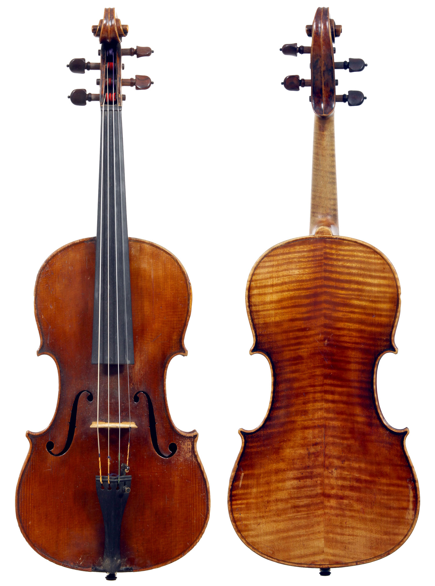 This is an exceptionally small viola - its back length is 38.7 cm. It has been played a lot and for good reason - it is comfortable and well-toned. It has been in professional use until recently.