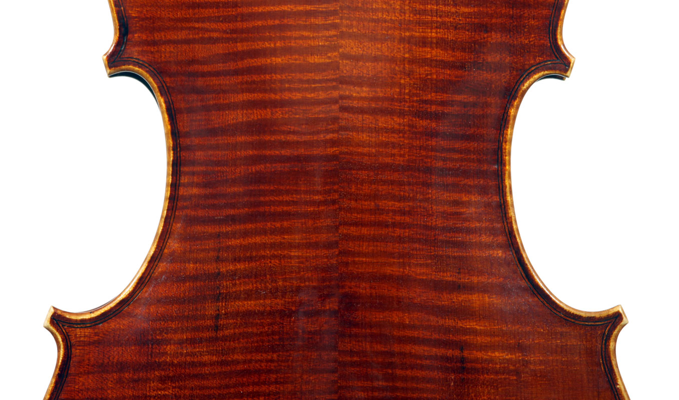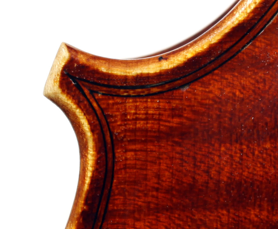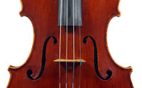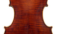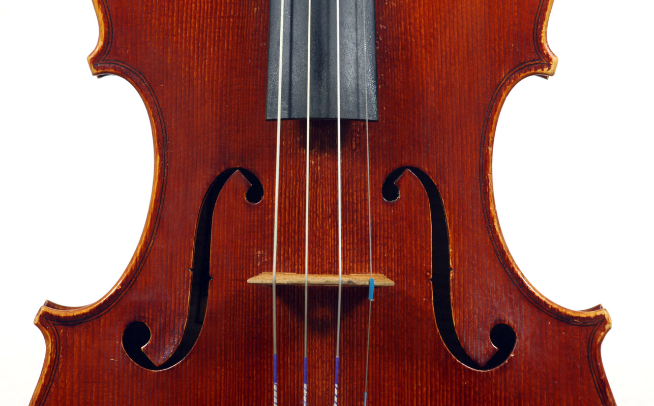 This superb viola, dubbed Lucia, was made toward the end of her apprenticeship in Cremona. It has a backlength of 40 cm and is made of a superb selection of materials - the two-piece back, ribs, neck and scroll are of excellent, nicely figured maple with a straight, even, narrow to medium curl running straight across the back. The top is of medium to open-grained tone spruce with the winter-growth lines widening to the flanks. The red-brown varnish compliments the materials well. The scroll is very well-balanced and the Fs, purfling and cornerwork show a steady hand with attention to detail.