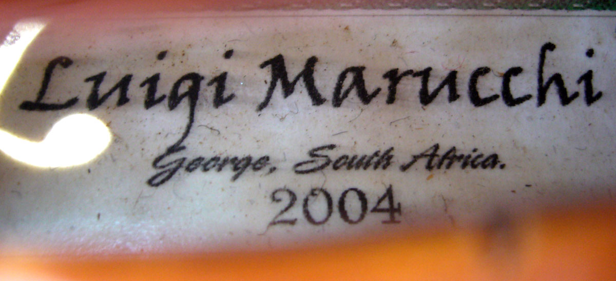 This violin was commissioned from Mr Marucchi by Prof. Dereck Ochse in 2004 at the time when Prof. Ochse had just retired, sold his J. B. Vuillaume he used throughout his life and was looking to replace it. It is a copy of the work of Nicolas Amati and it shows a steady hand and fine workmanship with attention to detail.