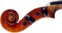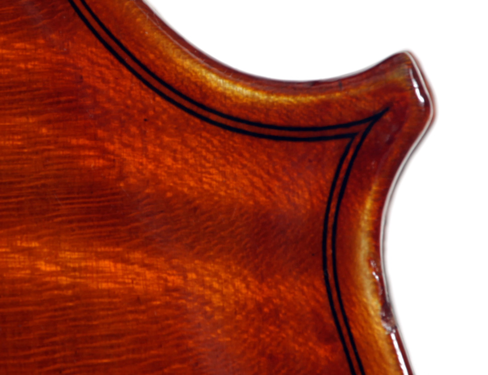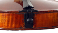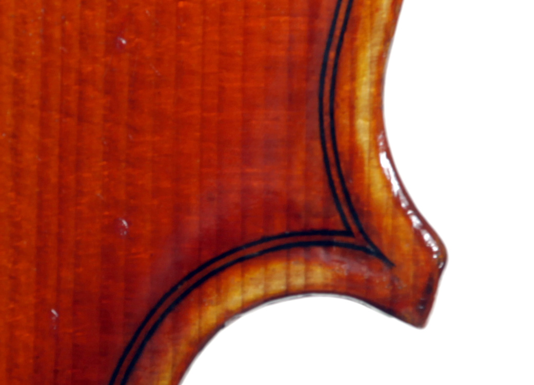 This violin has an ebony edge protector built into the edge of the top's treble c-bout, to protect the edge from being struck by the bow's frog - something that Sandor Elek also did as a matter of course. There is a lot of forethought and insight behind this.