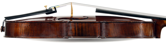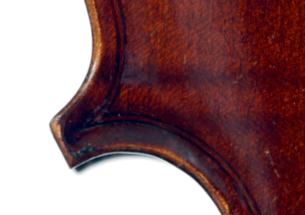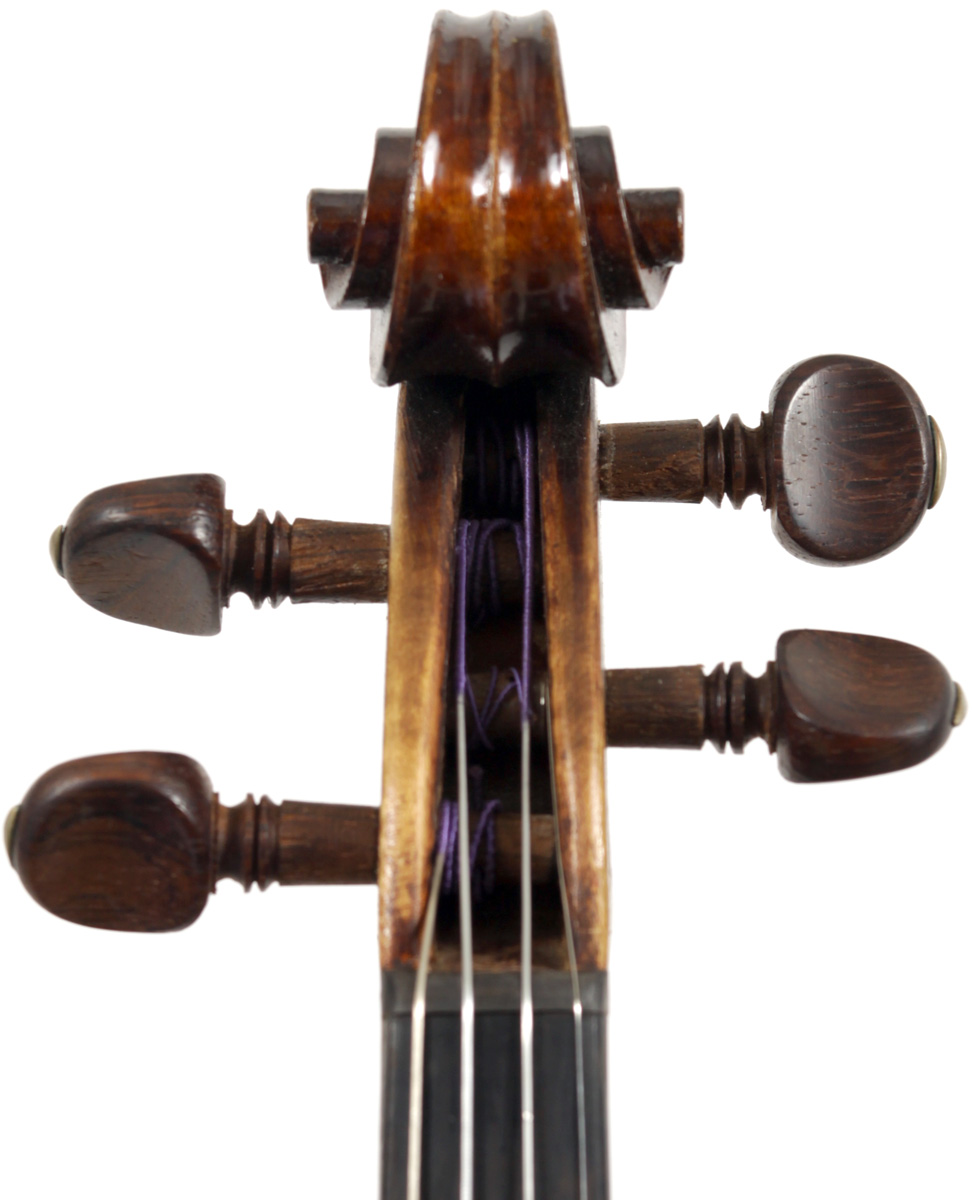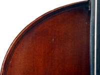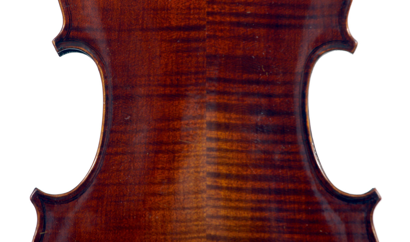 It's an attractive instrument in very good condition. The two-piece back, ribs, neck and scroll appear to be of the same piece of mildly flamed maple with a straight narrow to medium curl. The top grain is unusually narrow. Workmanship throughout is tidy and steady.