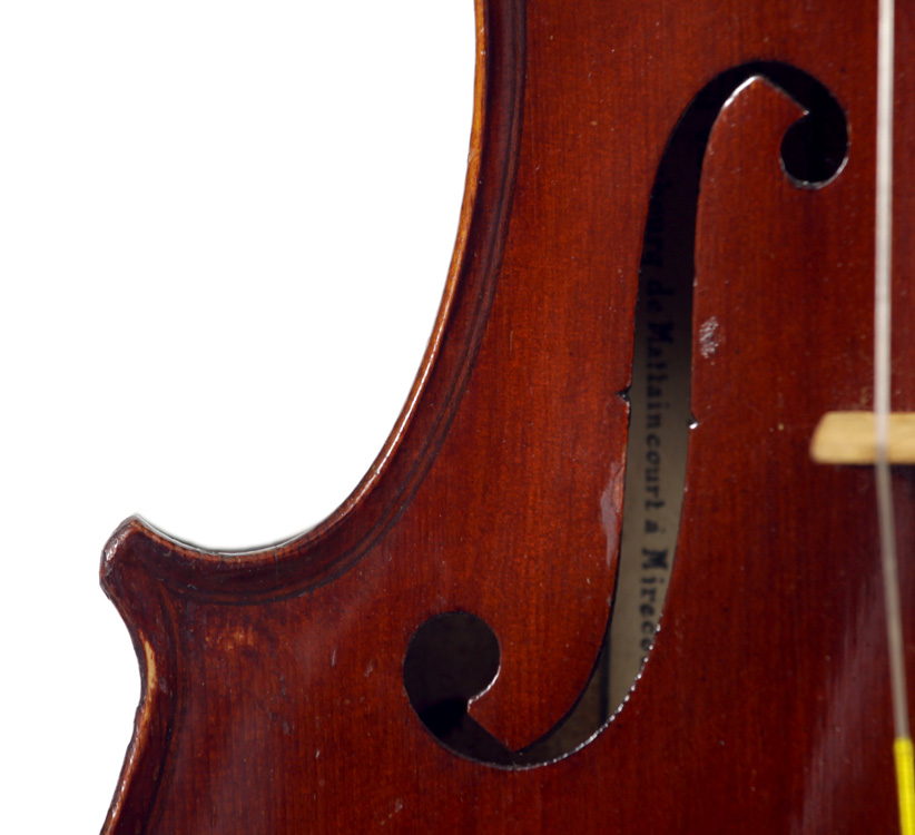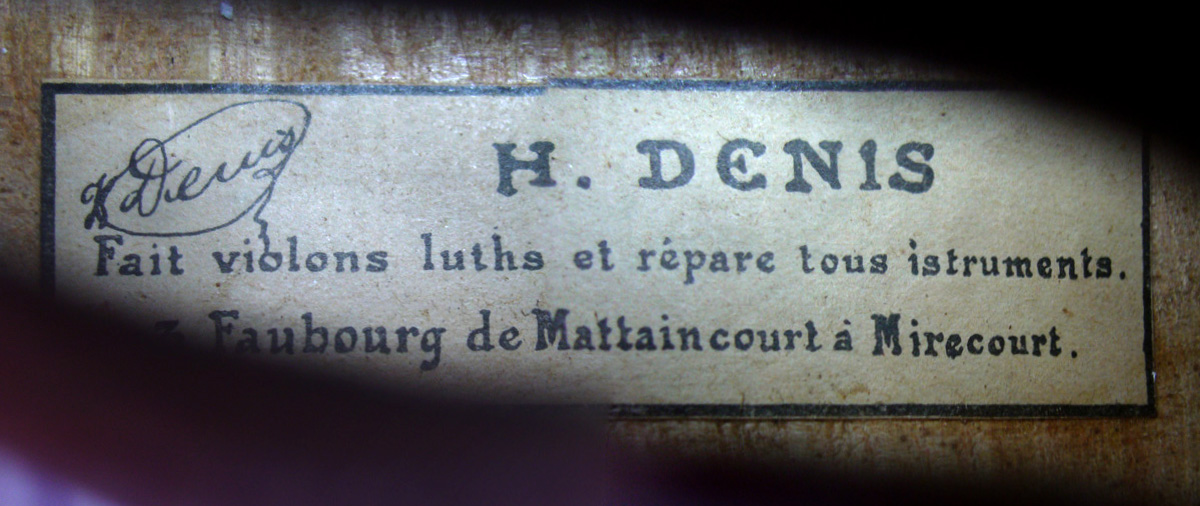 This French violin, probably made around 1900 is characterised by robust and healthy tone with power and projection. Although it is labelled and signed 'H. Denis' it is sold with a certificate of authenticity attributing it to the studios of Jérôme Thibouville-Lamy.