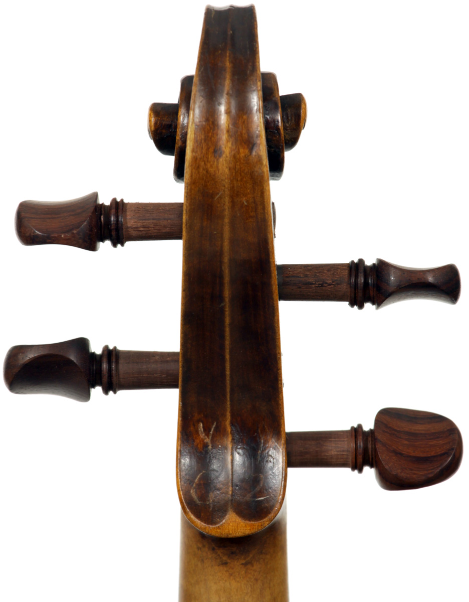 This is a small instrument as far as violas go. With a length of back of only 38.8 cm, it is one of the smallest violas I've encountered and is eminently suitable for a woman or a small person.