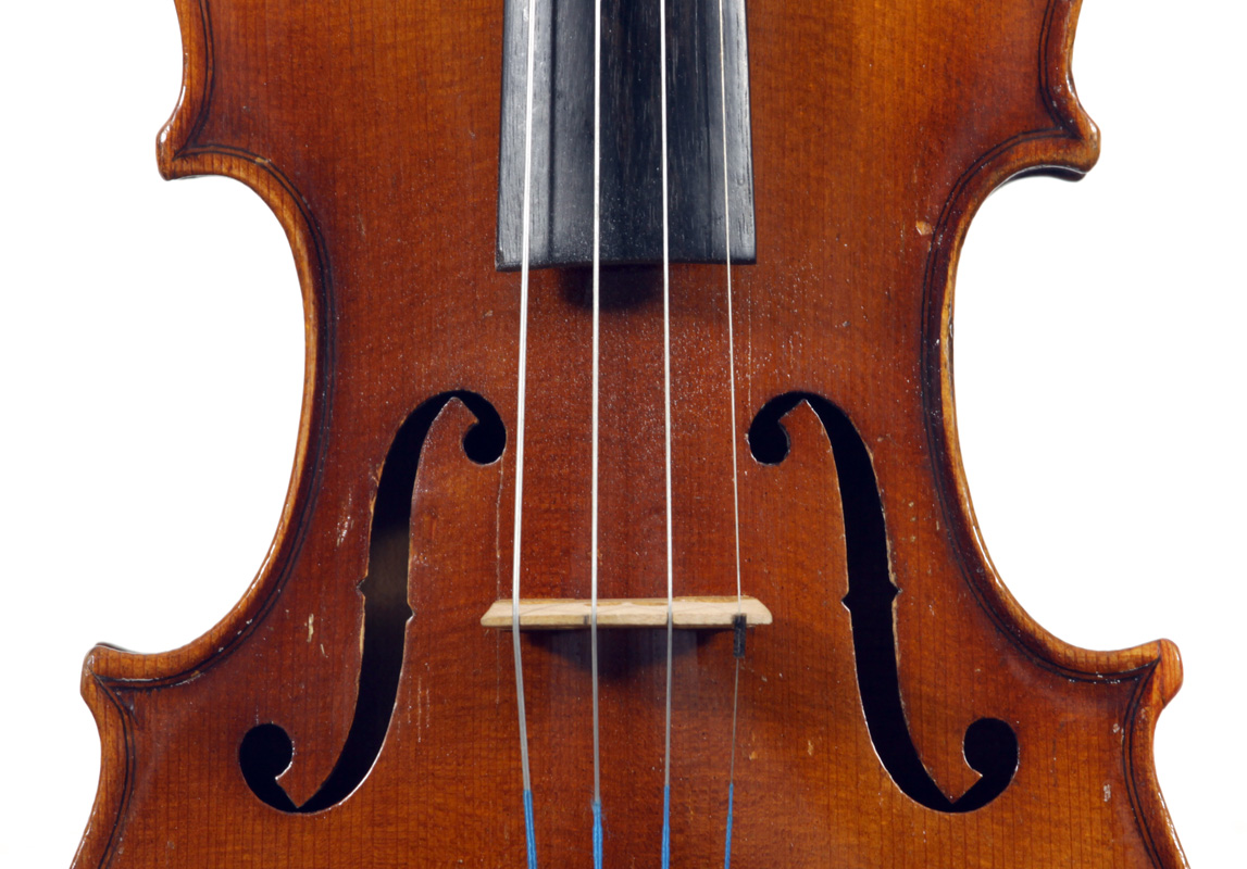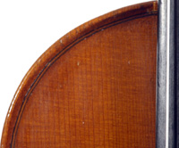 Two minor cracks have been professionally repaired and pose no threat to the structural integrity of the violin. The lower treble corner on the front has been rebuilt.