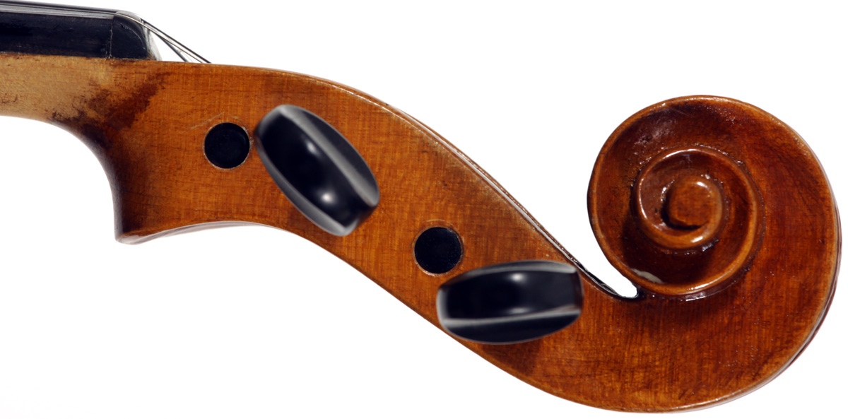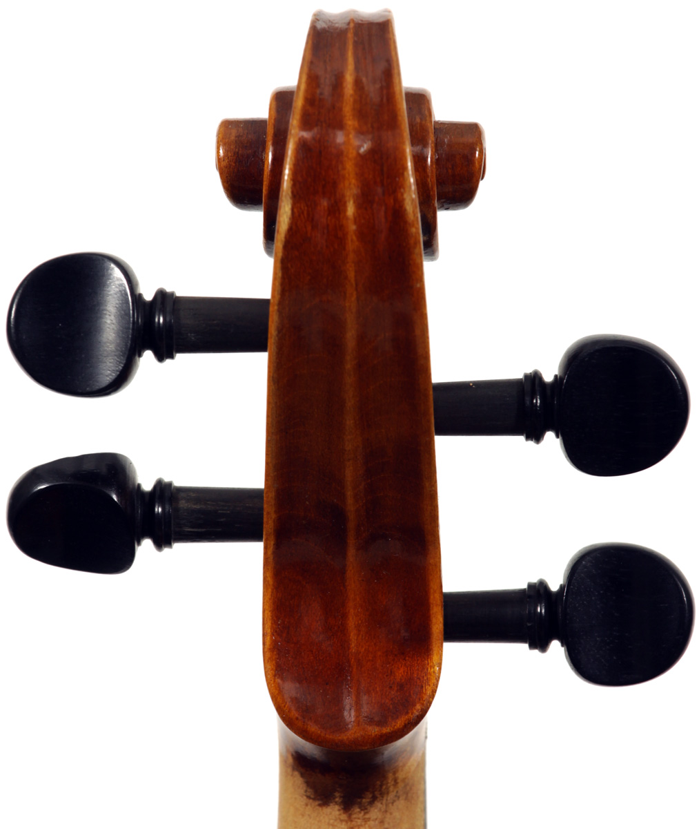 This unlabelled little violin is probably of German or East European origin. It represents good trade (commercial) work and has probably served several generations of children.