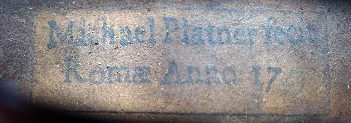 This violin is genuinely old and has all the characteristics of an instrument dating from the early to mid-18th century. The label conforms to that of Michael Platner. The handwritten date is virtually illegible, but seems to be 1749.