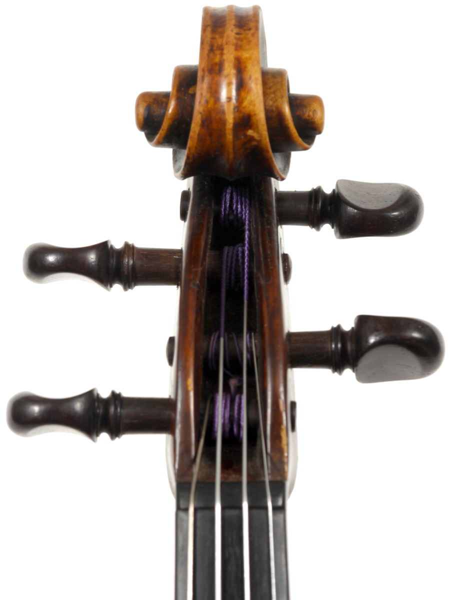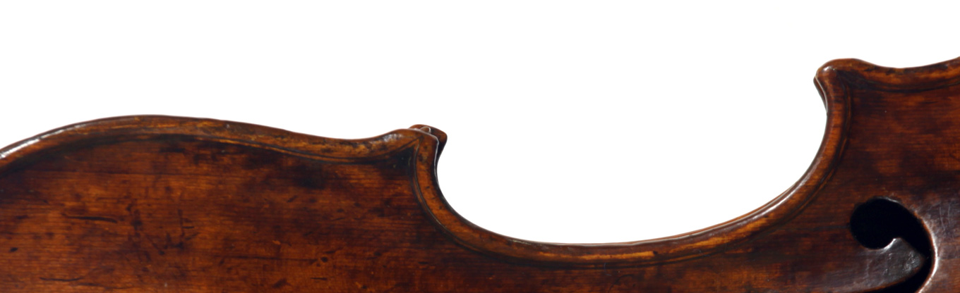 Workmanship in this violin is of a very high order, evidenced particularly in attention to detail, the impeccably traced purfling and superb mitres and cornerwork. The scroll is elegant and nicely balanced.