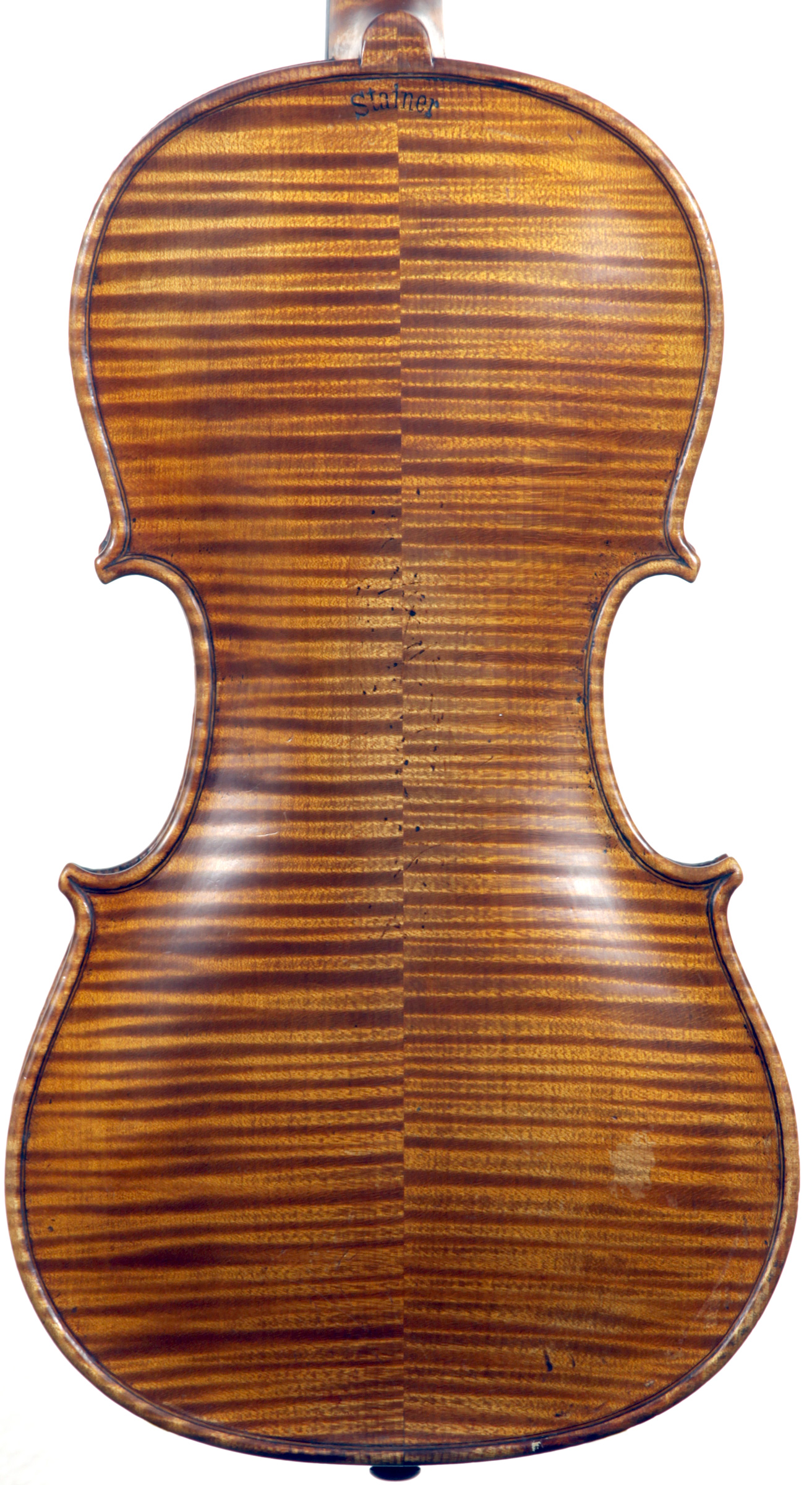 This violin follows the Stainer model and although unlabelled, the name Stainer is stamped into the back, just under the neck button. It is manifestly of German commercial origin, made around 1920.