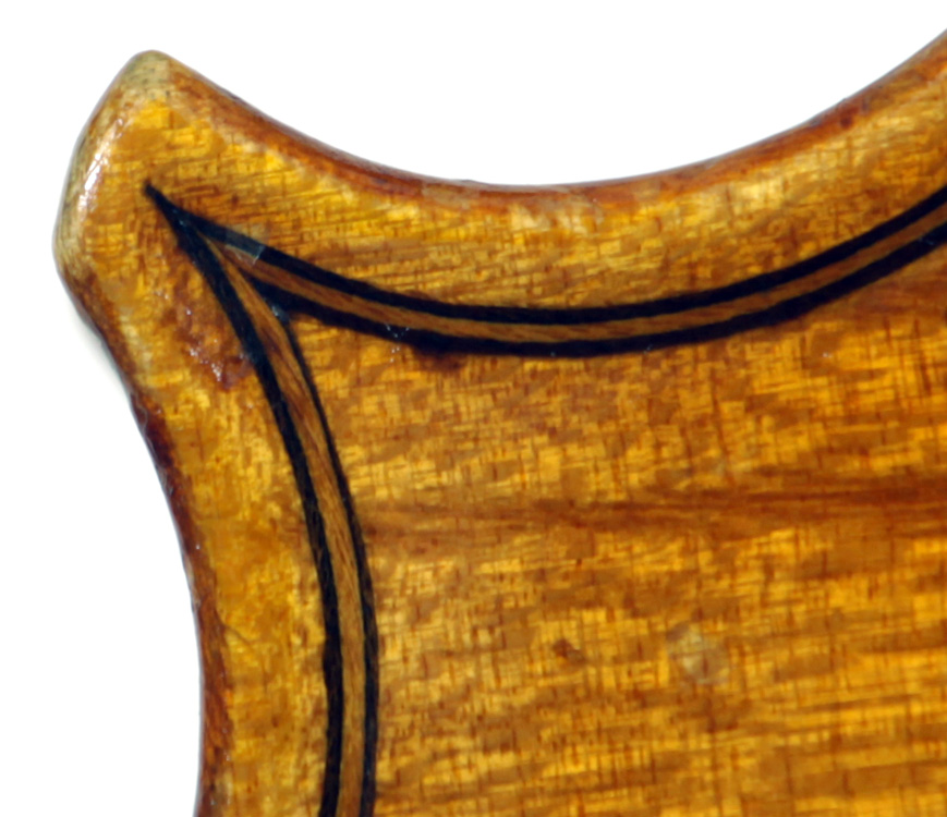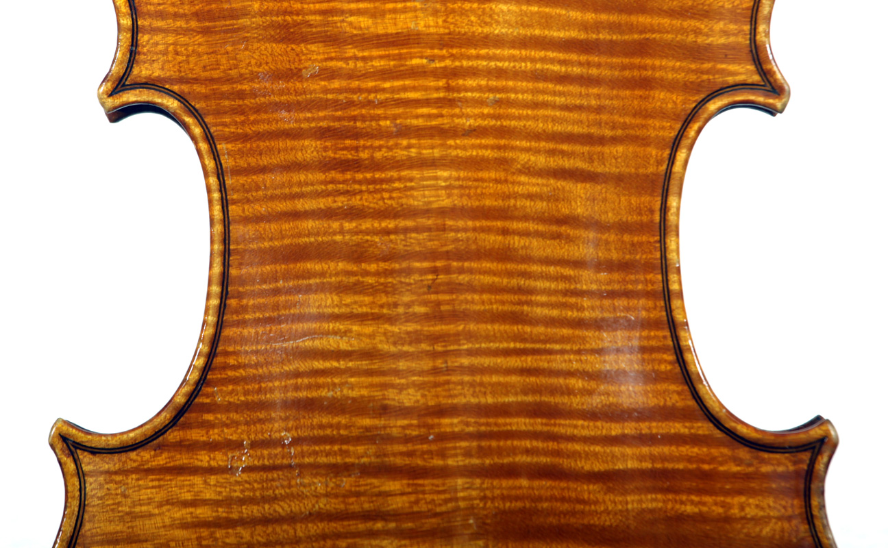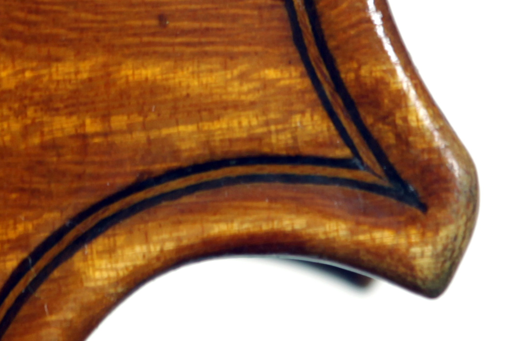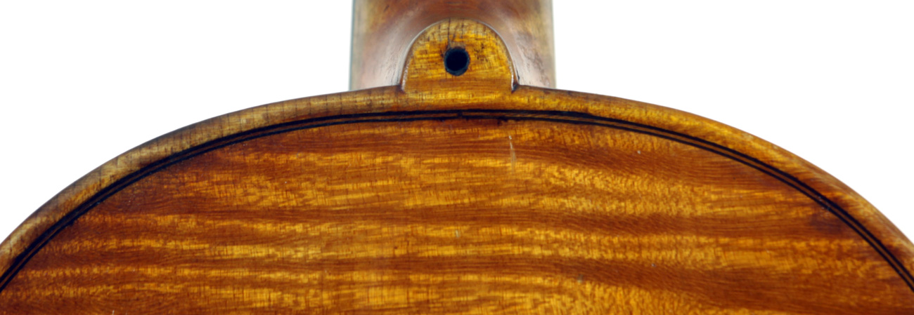 In this violin one immediately notes the exquisite one-piece back. Workmanship throughout is impeccable, notably in the Fs, purfling and corners.