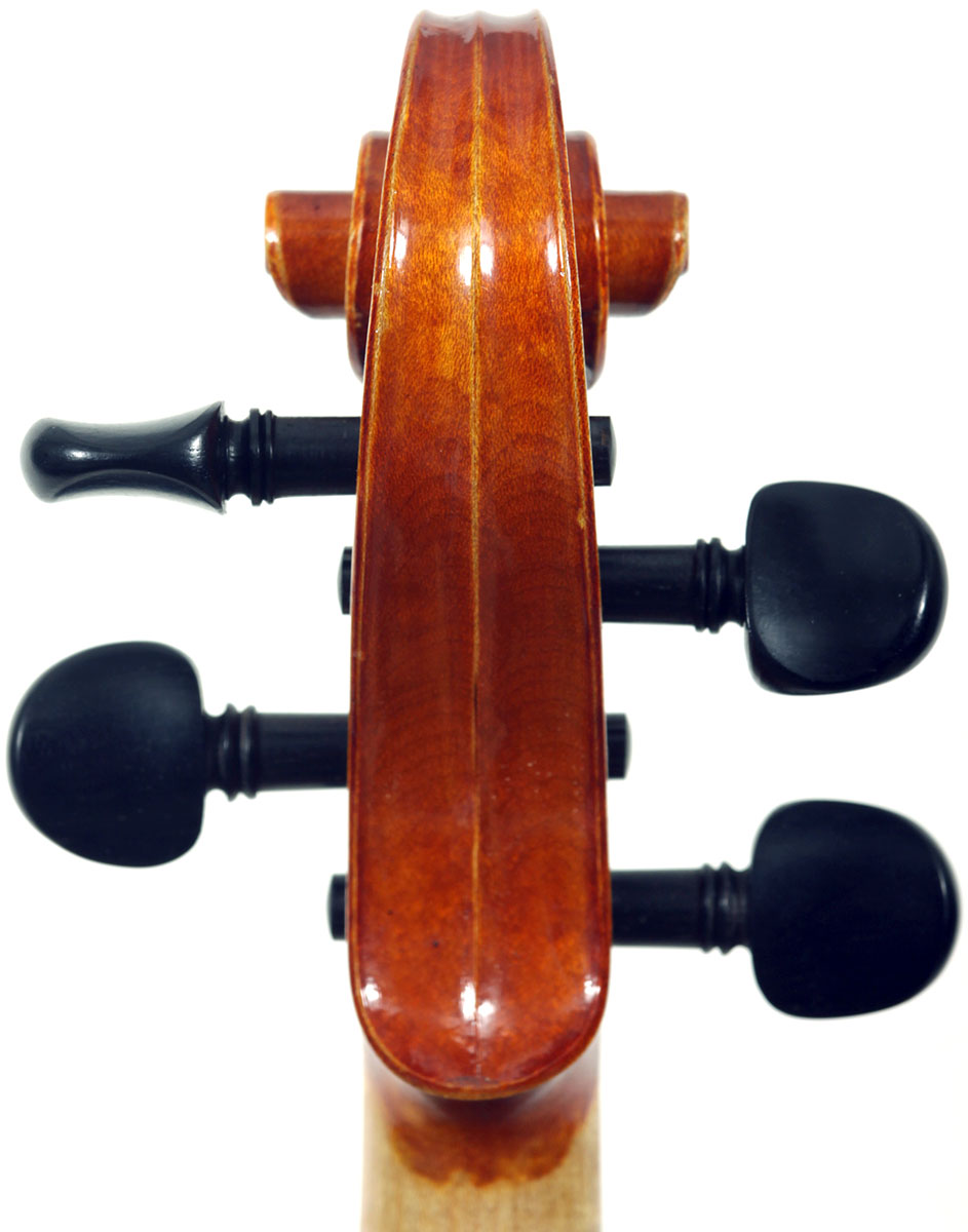 The very reputable violin dealership of Peyer Music in Cape Town existed for several decades and served the South African violin community very well until its demise around 2020. This dealership imported violins from China, set them up and labelled them with their own business label. These instruments were always well chosen, well made and well toned. This violin is dated 2004 and is nicely made throughout of good materials and varnished in an attractive golden red varnish over a yellow ground.