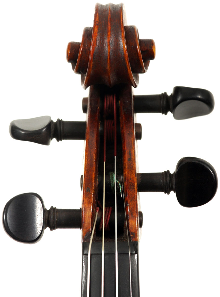 One is struck by the very attractive wine-red varnish, reminiscent of French preferences, and by the tidy workmanship throughout, notably crisp and sharp workmanship in the Fs with nicely fluted palettes.