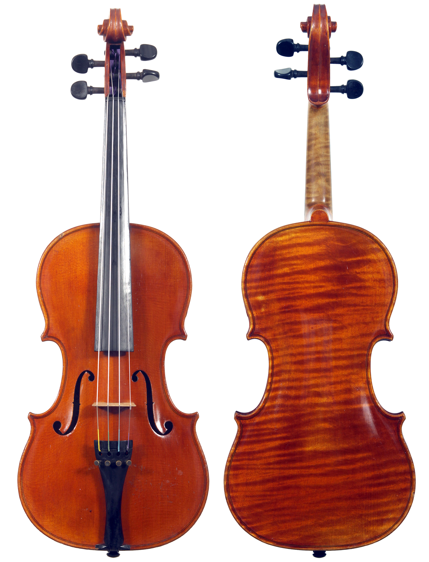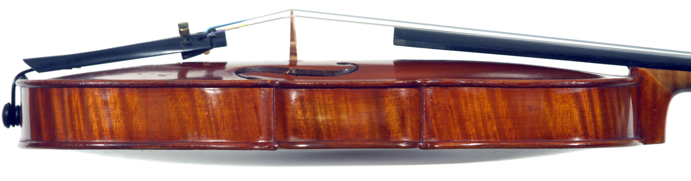 It's not known where Van de Geest sourced this violin from but it is an attractive instrument with a beautiful one piece back and is in impeccable condition. The violin is very responsive with an open and clear tone. Workmanship throughout is refined with attention to the detail of good lutherie.