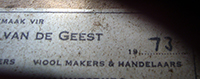 Apart from his own personal output as violinmaker, J. J. van de Geest imported 'trade' instruments (commercial instruments aimed at the student and amateur market) from mainly Germany, Holland and Japan. Such instruments were usually of reasonably good quality and he always labelled them as "Made for J J van de Geest", followed by additional information, such as a serial number, date, address etc. These instruments were NOT made by Van de Geest, but were the output of large trade studios (a euphemism for "factories"). These instruments (including a large number of violas, cellos and child instruments), emerge all over South Africa.