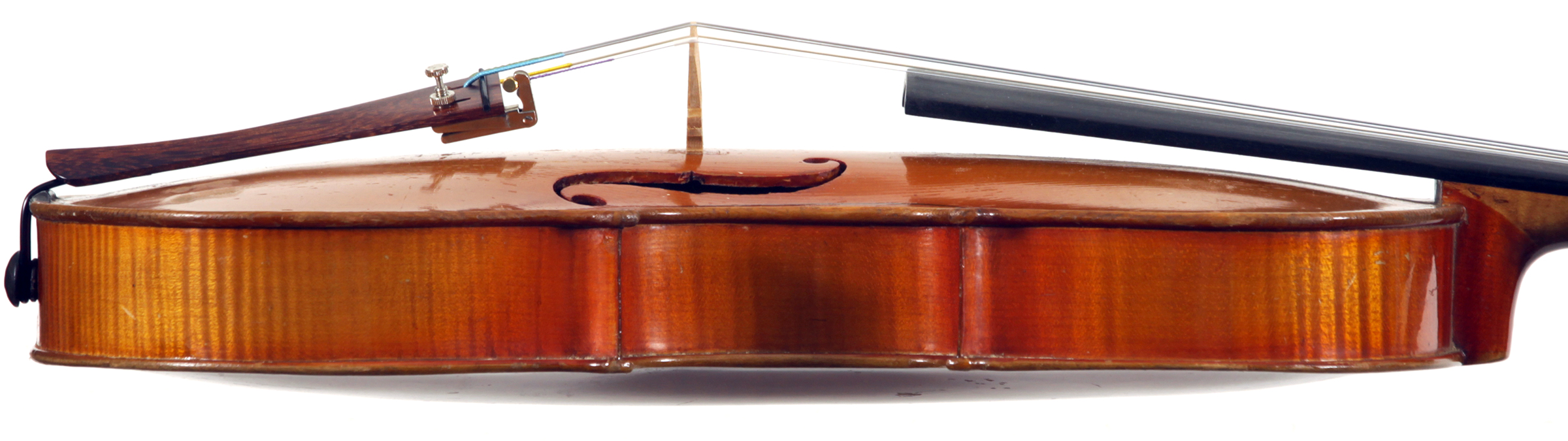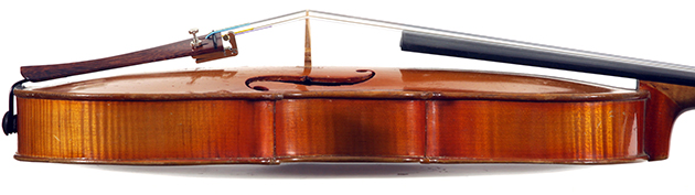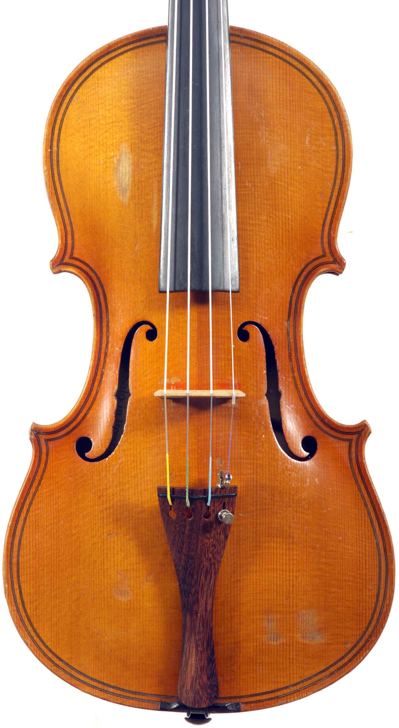 This is a responsive instrument with big tone, easy to play on. This violin is manifestly a commercial reproduction of the work of Gaspar Da Salo. General workmanship in the volute, the Fs, purfling and particularly the varnish is characteristic of German trade work. The label is purely generic, dated 1545, but this violin has nothing to do with that maker's work.