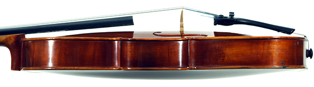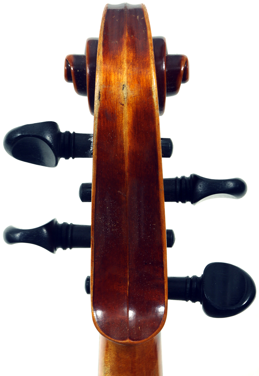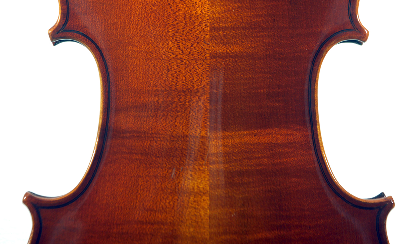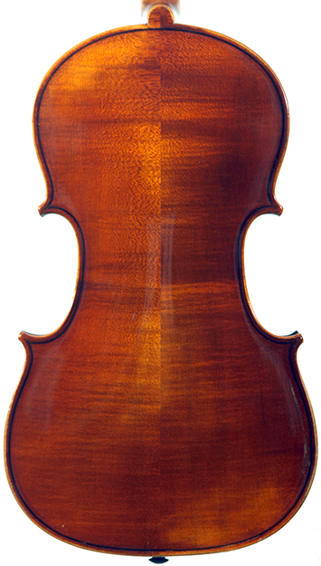The two-piece back, ribs, neck and scroll is of mildly flamed maple. The front is of good tone spruce and all workmanship is refined and accurate. Interestingly the bridge was made by Timothy Crake, a London - graduated violin maker who lived in Johannesburg for a number of years before moving to New Zealand where he passed away.