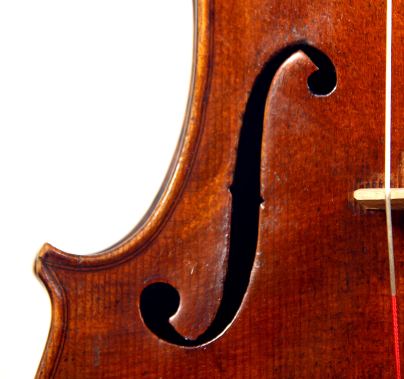 This viola bears a generic Stradivarius label used in many commercial instruments from that period and shows respect for high standards in the selection of good materials. Adding to its appeal is its relatively small size (back length of 39.2 cm), which indicates that it was made with a smaller person in mind.