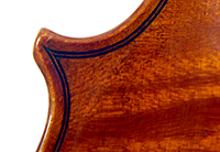 The two-piece back and ribs are of very attractive nicely figured maple with a distinct curl. The neck and scroll are of more plain wood. The varnish is an attractive amber and workmanship throughout is refined and accurate, conforming to the requirements of high-end lutherie.
