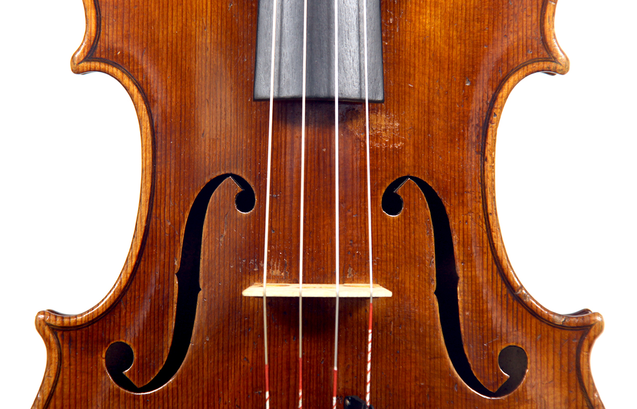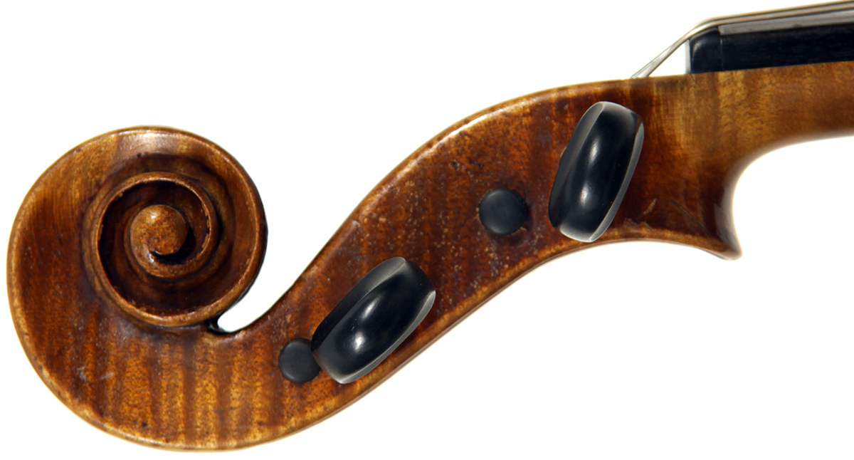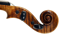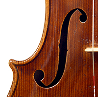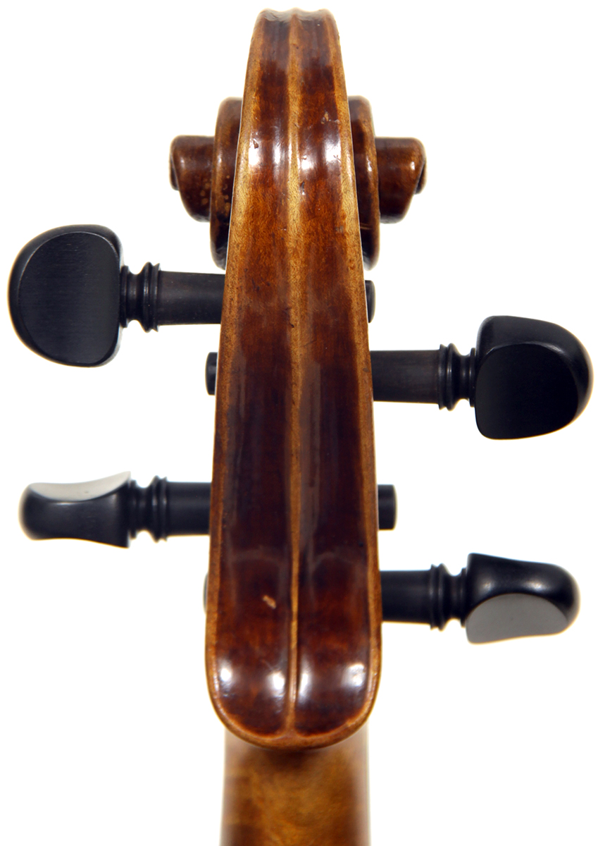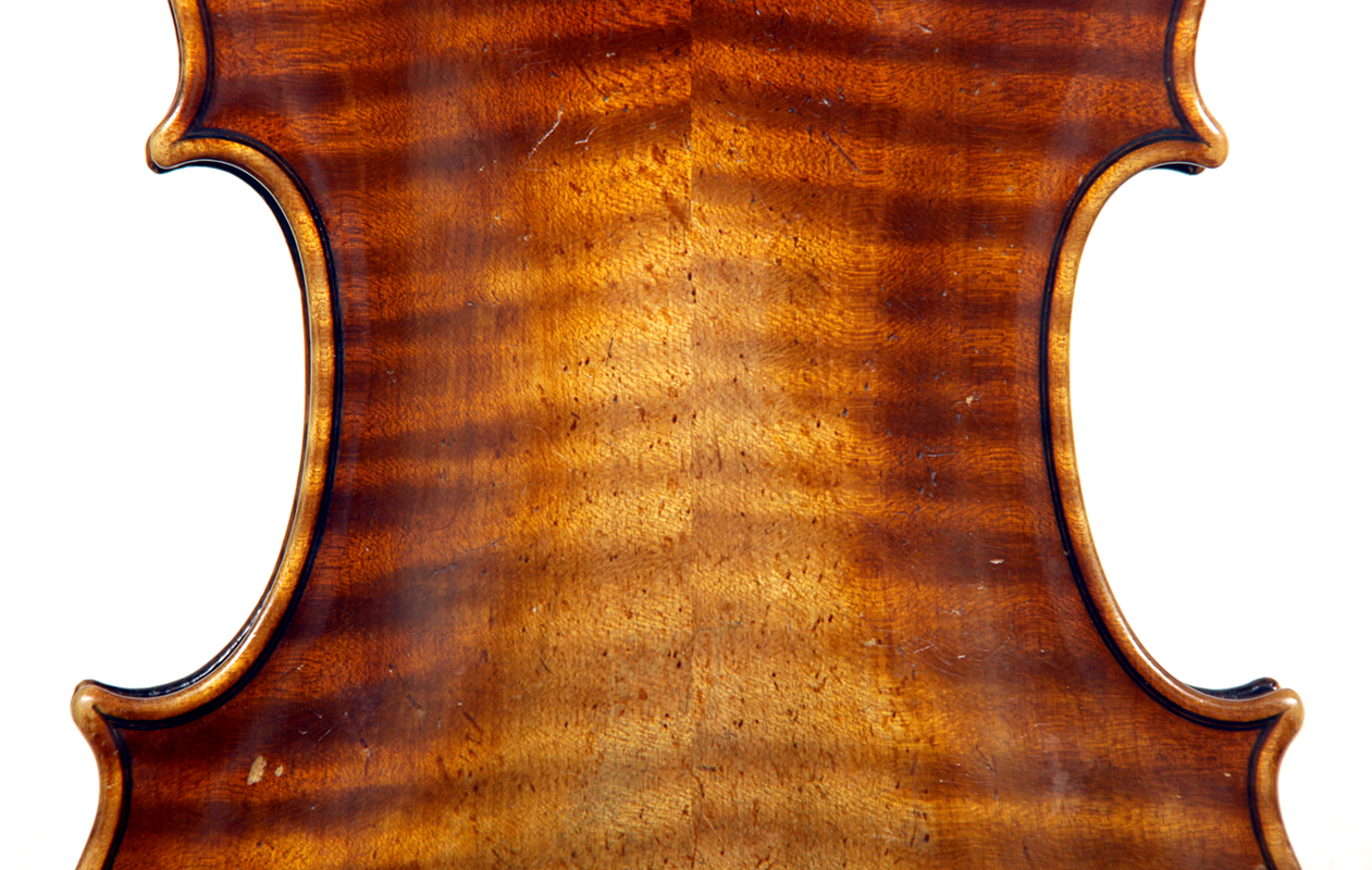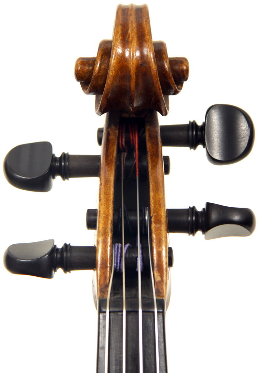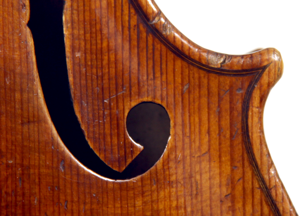 Workmanship throughout is excellent. The scroll is elegant and very refined. The Fs are beautifully proportioned and the purfling is well traced. The cornerwork is impeccable with superb mitres. It is lightly antiqued, which adds to the appeal.