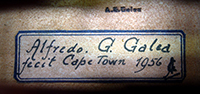 Alfredo G. Galea (1909-1994) was accredited as Master Violin Maker by the Italian National Association of Violin Makers in Rome, an accomplishment merited by the high quality of his work. The German researcher, Lütgendorff notes that Galea made his first violin at the age of 11 and by age 15 had completed 15 violins. His teacher at that time was the Italian violinmaker, Ami Care Coschiera, who had a workshop in Alexandria.