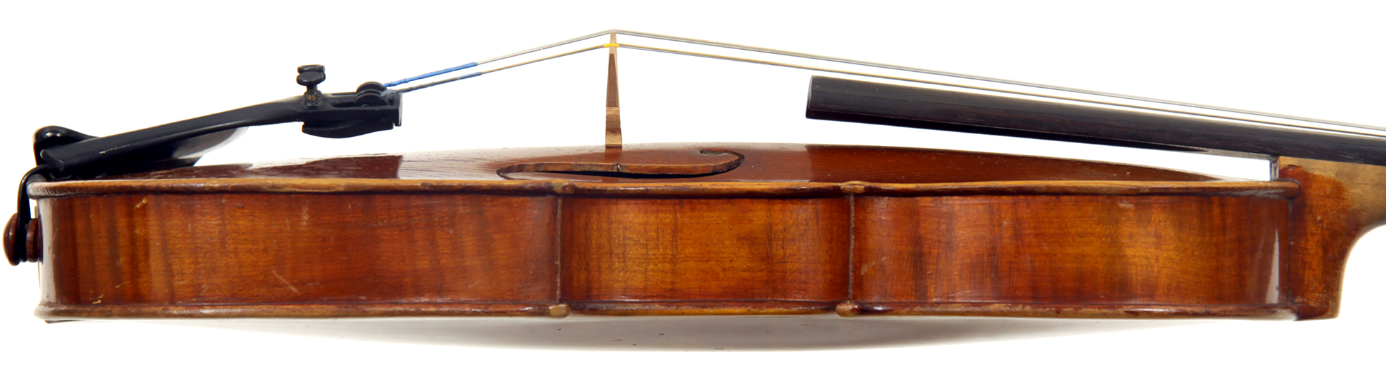 After some eighty years of serving a few generations of young musicians, this violin is in impeccable condition, completely free of cracks and repairs. Although unlabeled it is manifestly of German origin, nicely made with attention to detail.