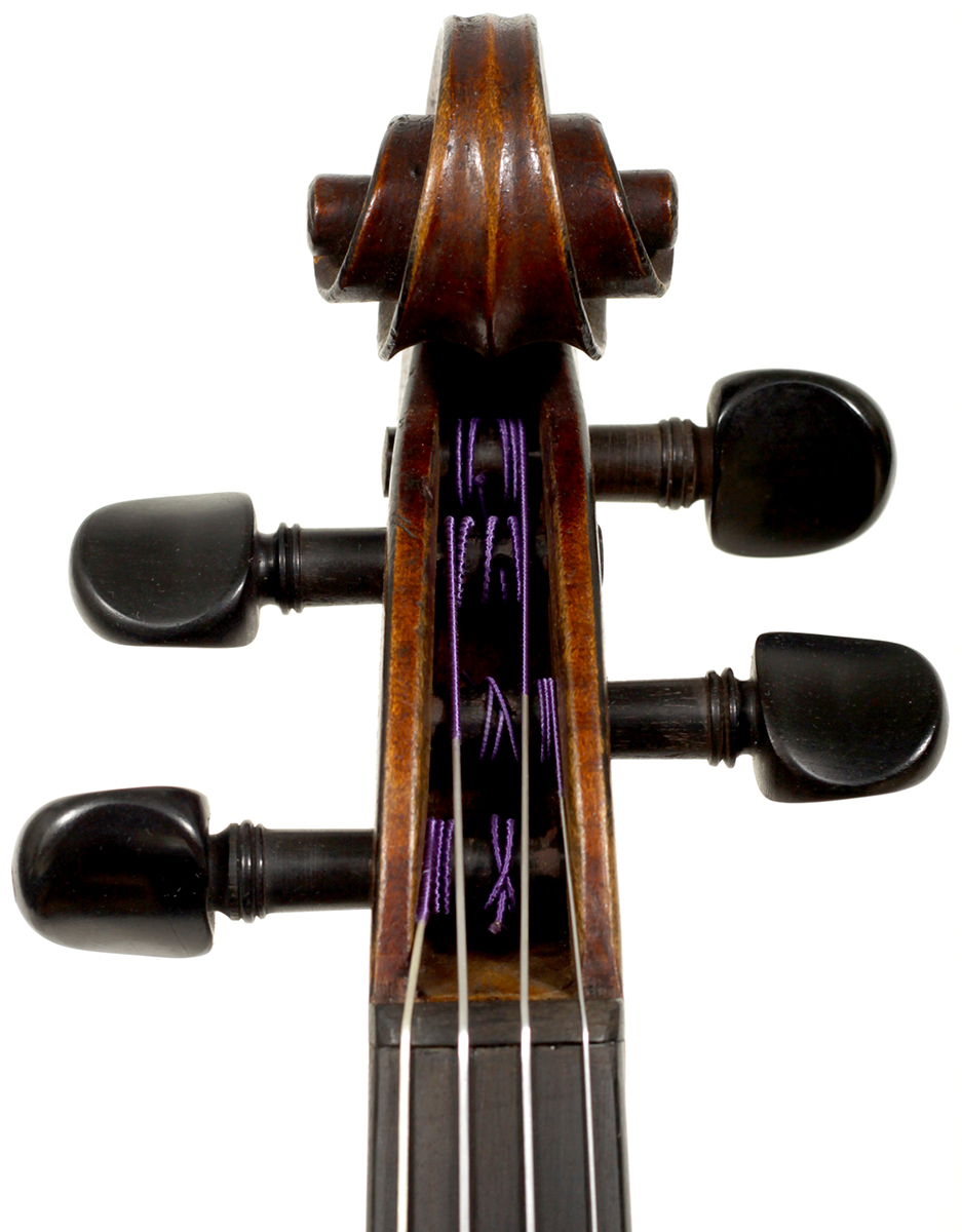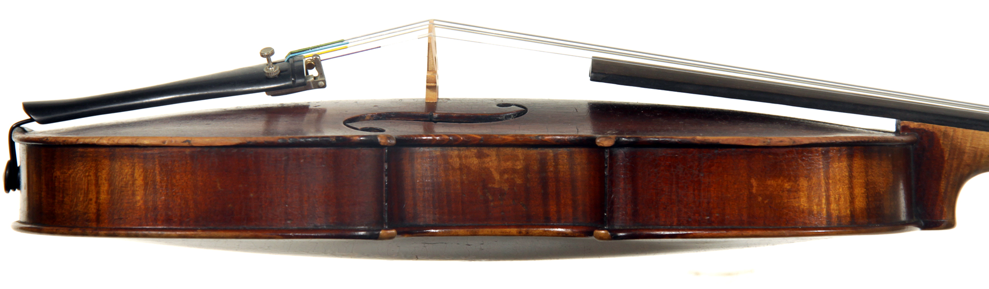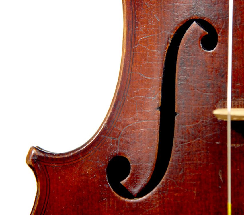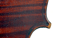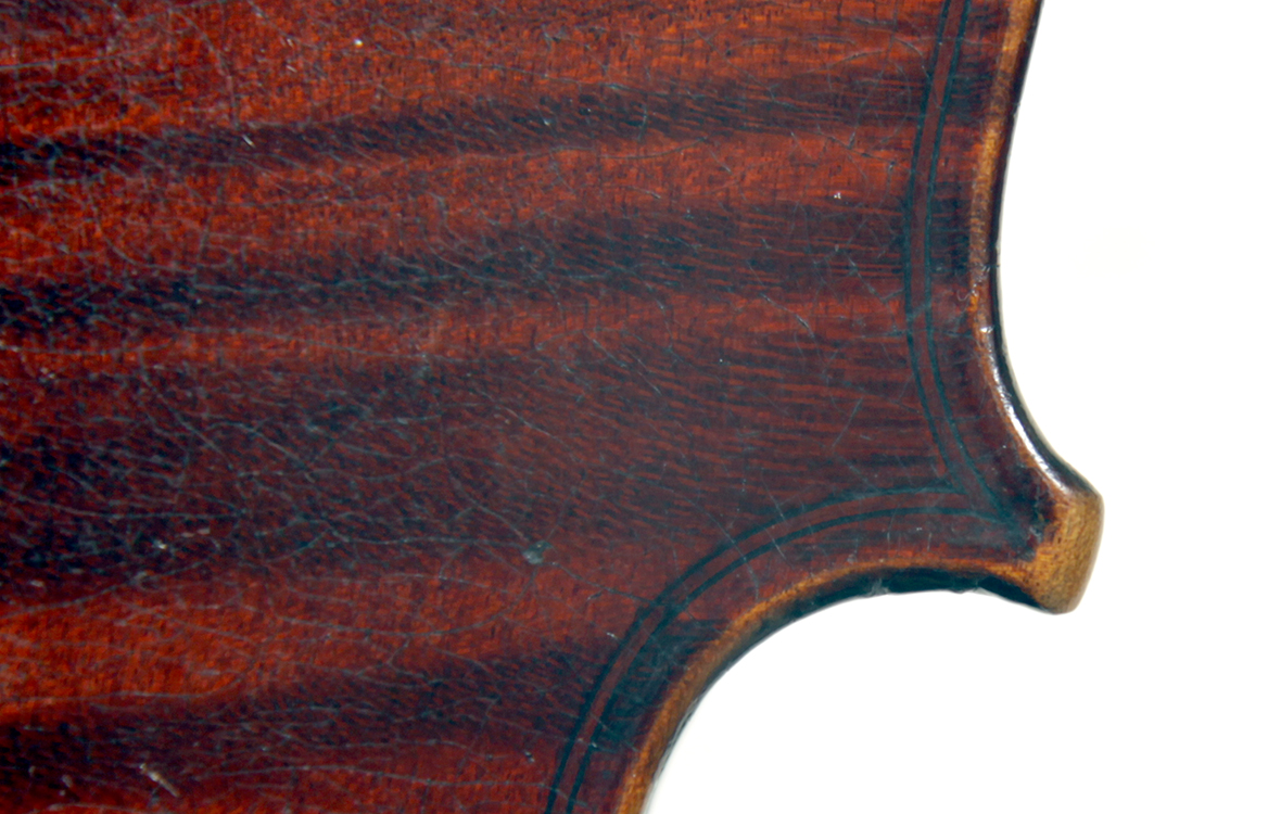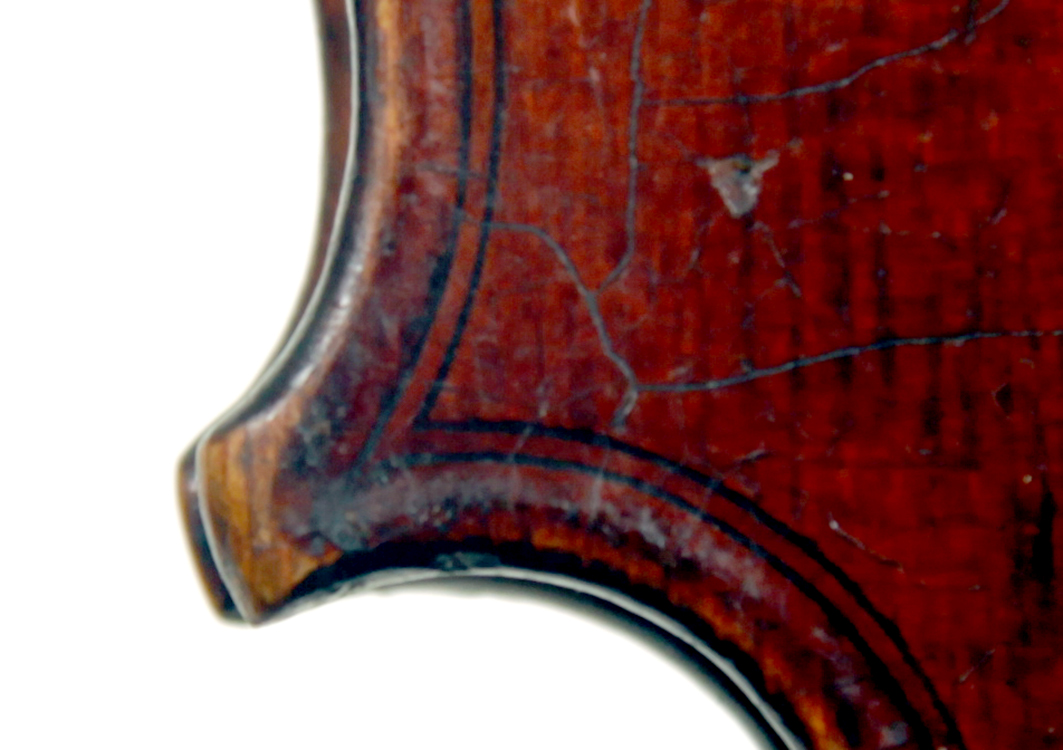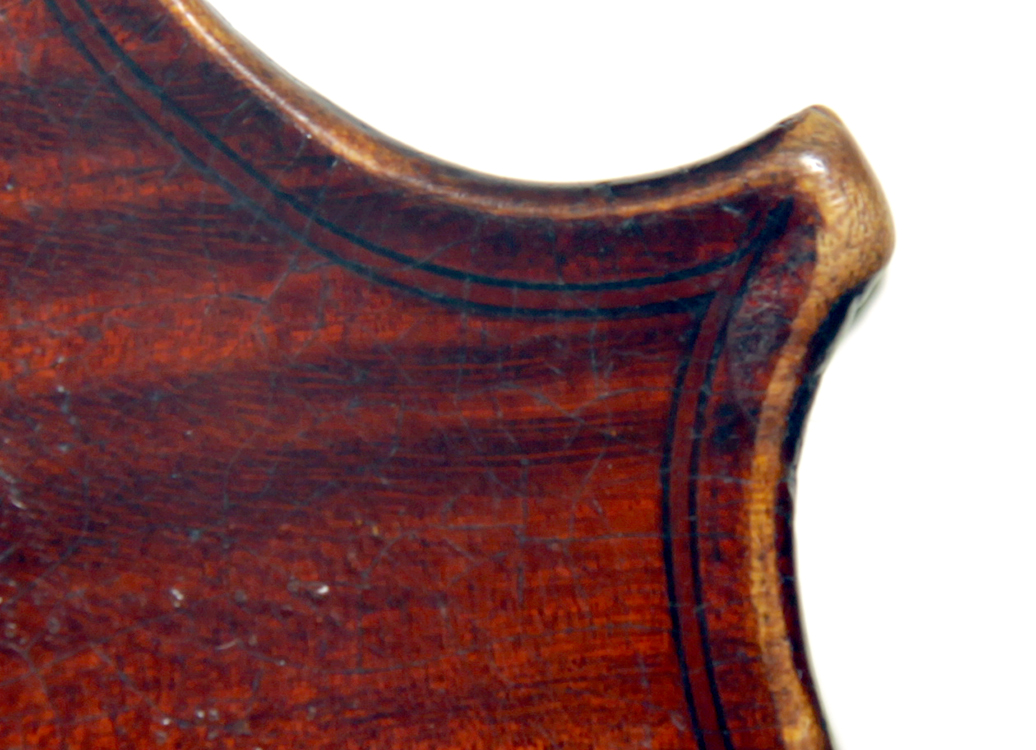 This violin is in superb condition, completely free from cracks or evident repairs. The varnish shows craquelure, probably deliberately induced as part of the antiquing process.