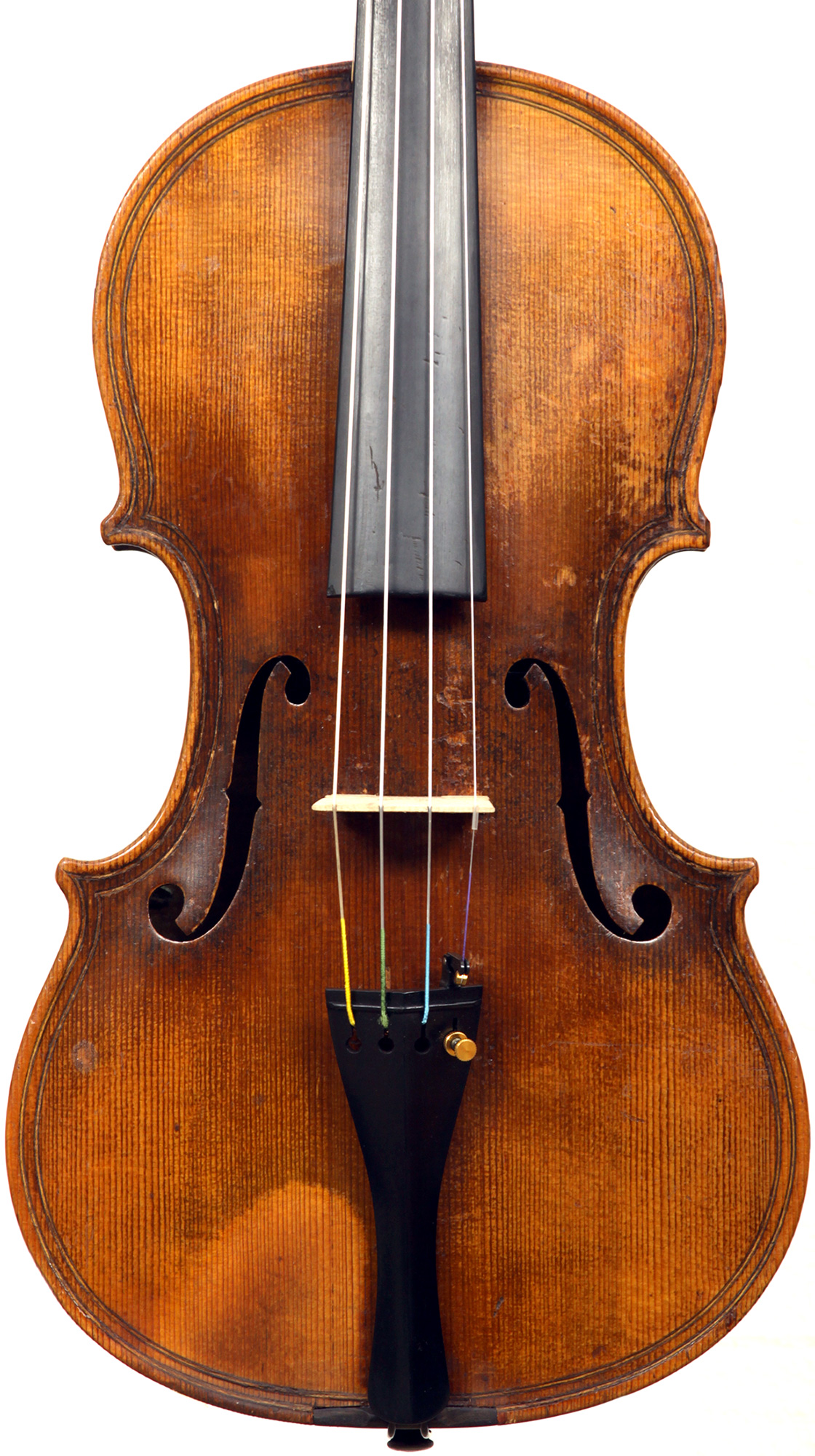 This violin is completely free from cracks or evident repairs and can be said to be in excellent condition. It has a new bridge, tailpiece and a fine ebony chinrest, along with new dominant strings.